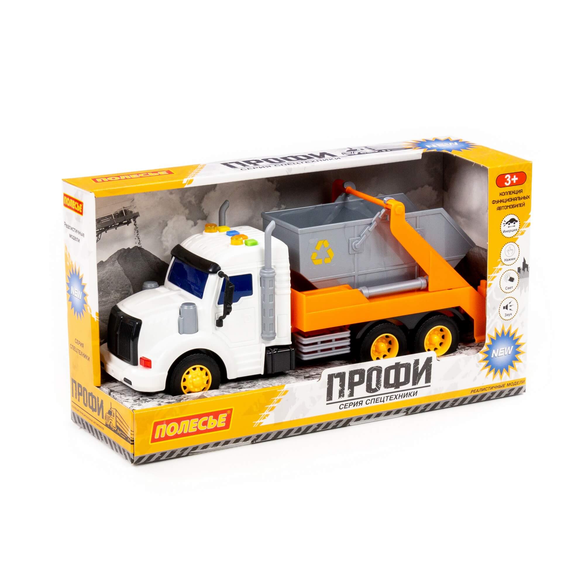 "Профи", автомобиль-контейнеровоз инерционный (со светом и звуком) (оранжевый) (в коробке) арт.86266