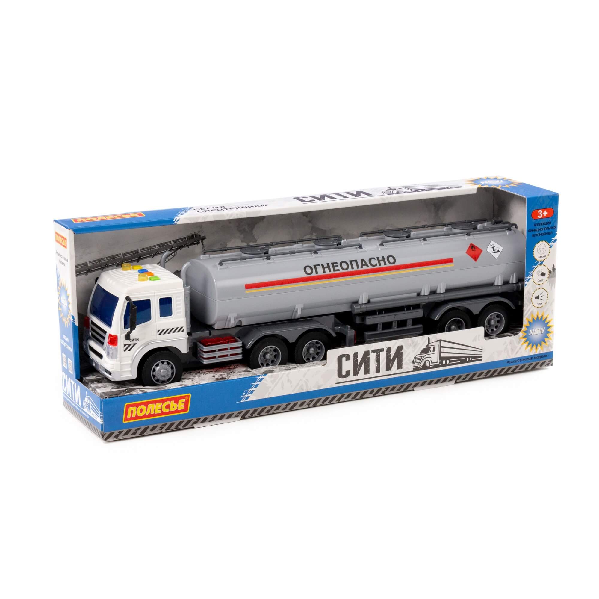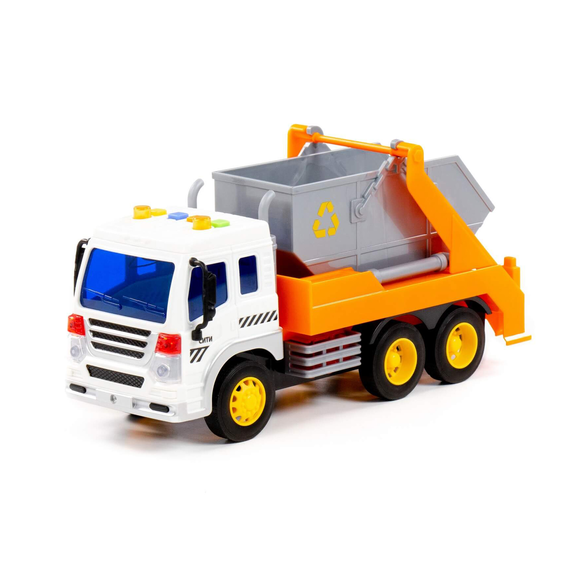 "Сити", автомобиль-контейнеровоз инерционный (со светом и звуком) (оранжевый) (в коробке) арт. 86228