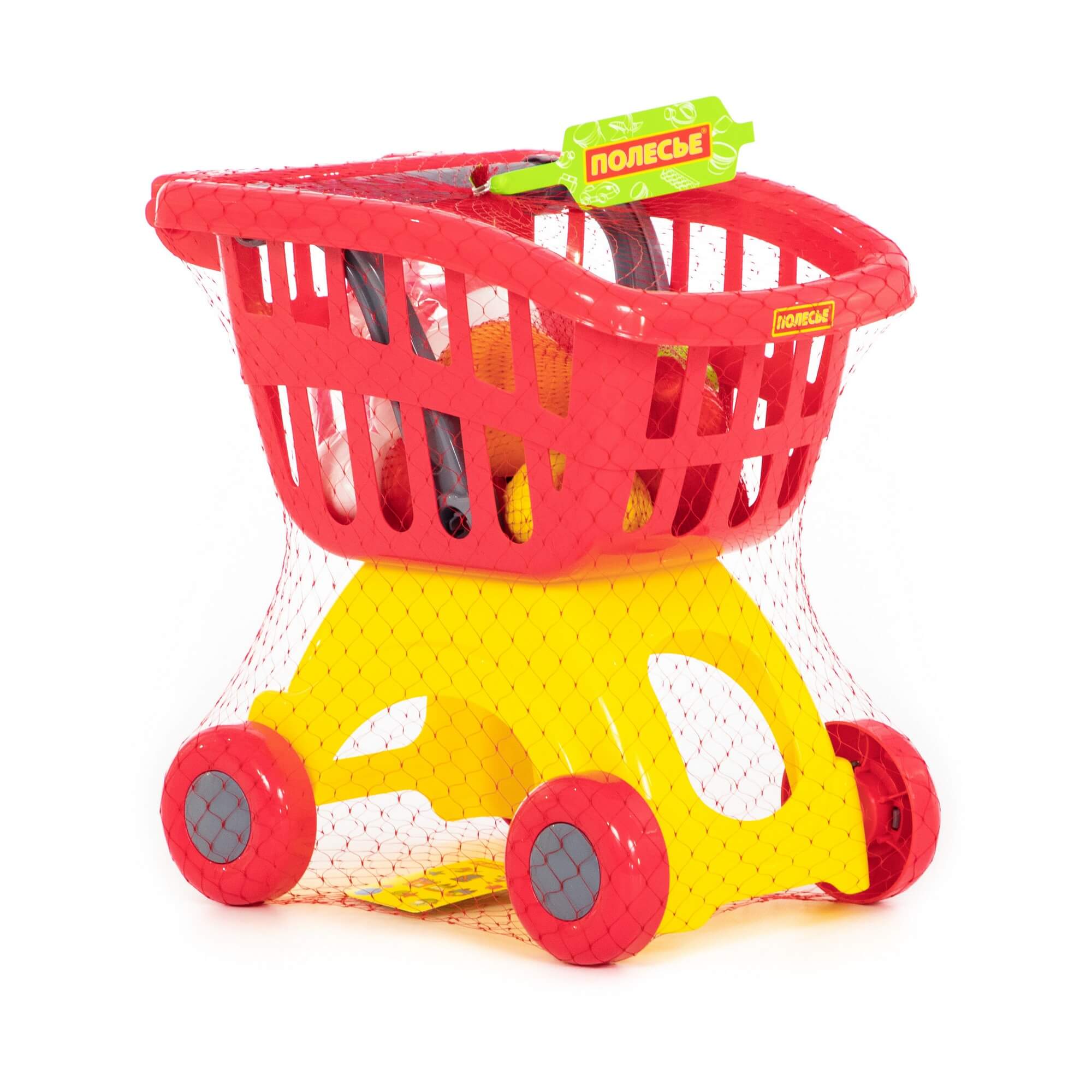 Тележка для маркета "Мини" + набор продуктов №14 (12 элементов) (в сеточке) арт.71385 Полесье