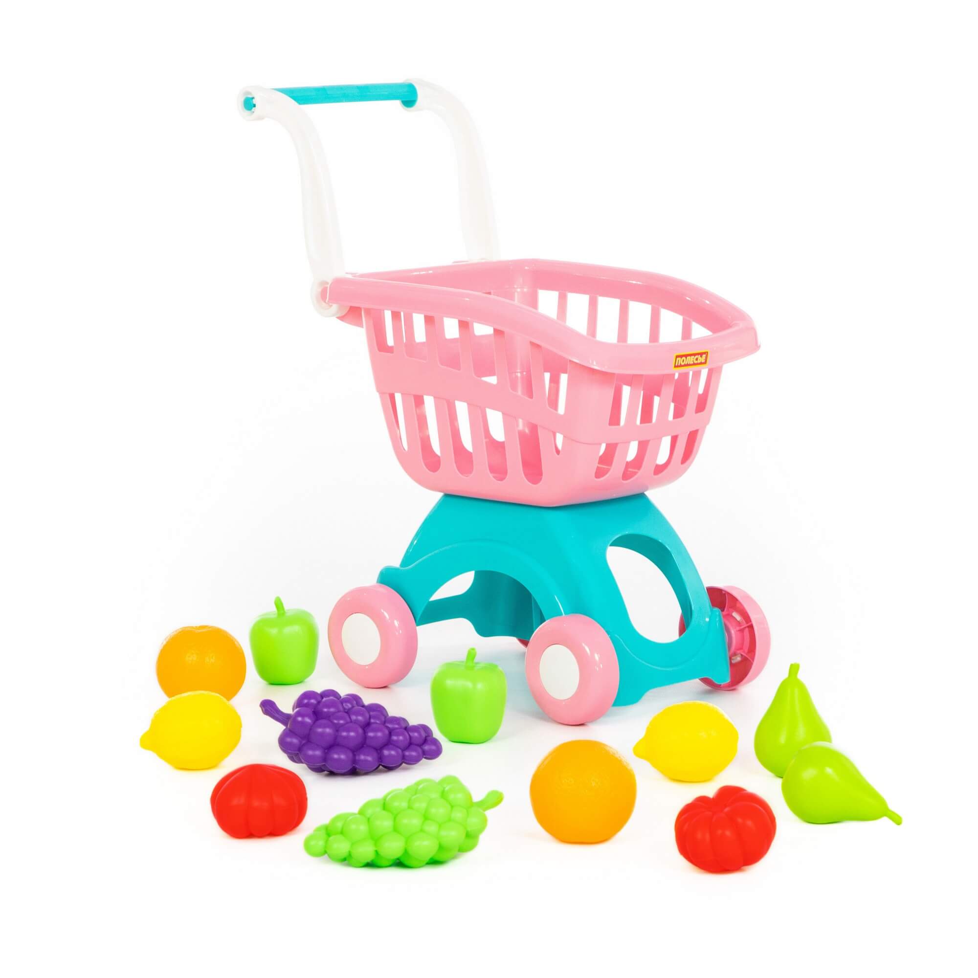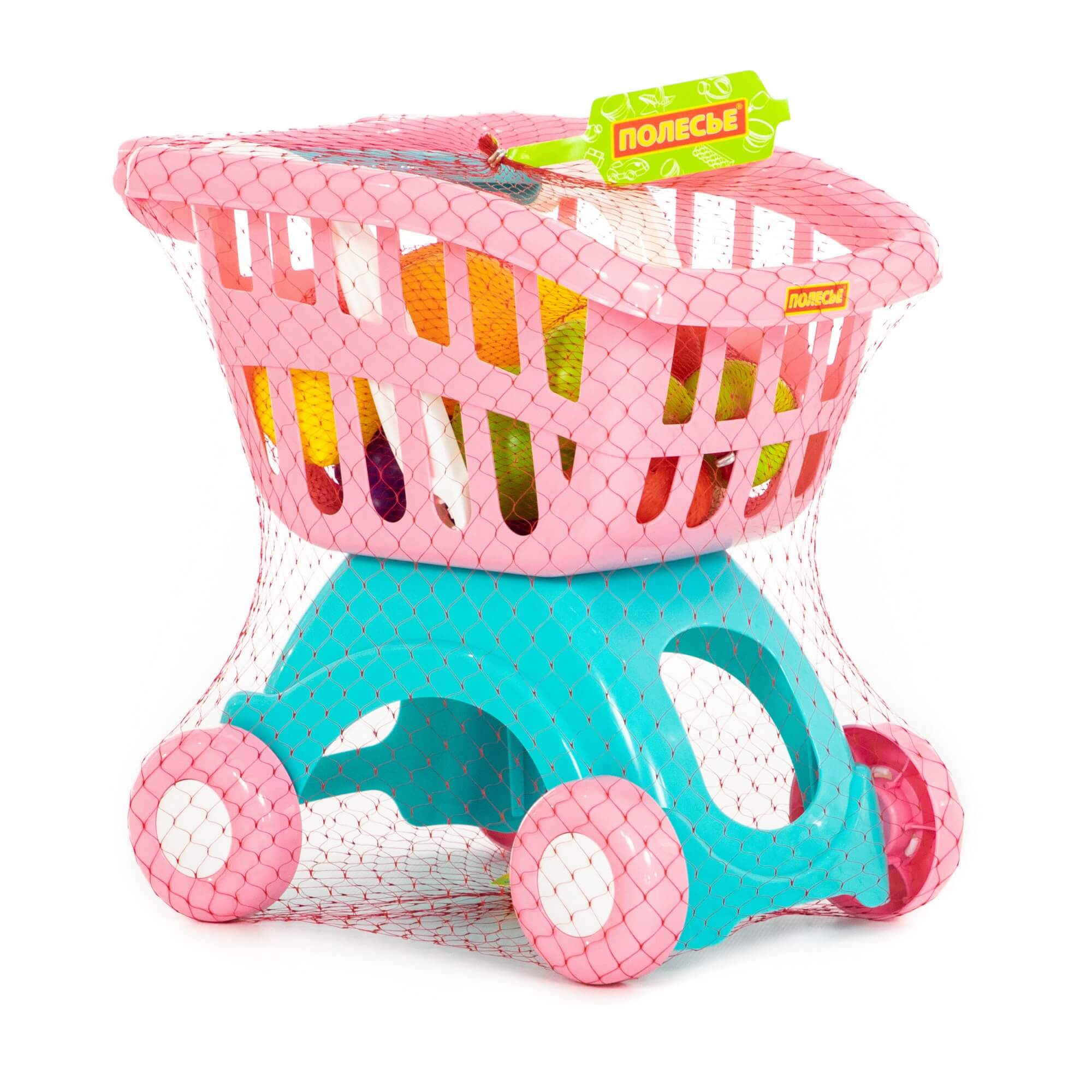Тележка для маркета "Мини" + набор продуктов №15 (12 элементов) (в сеточке) арт.71392 Полесье