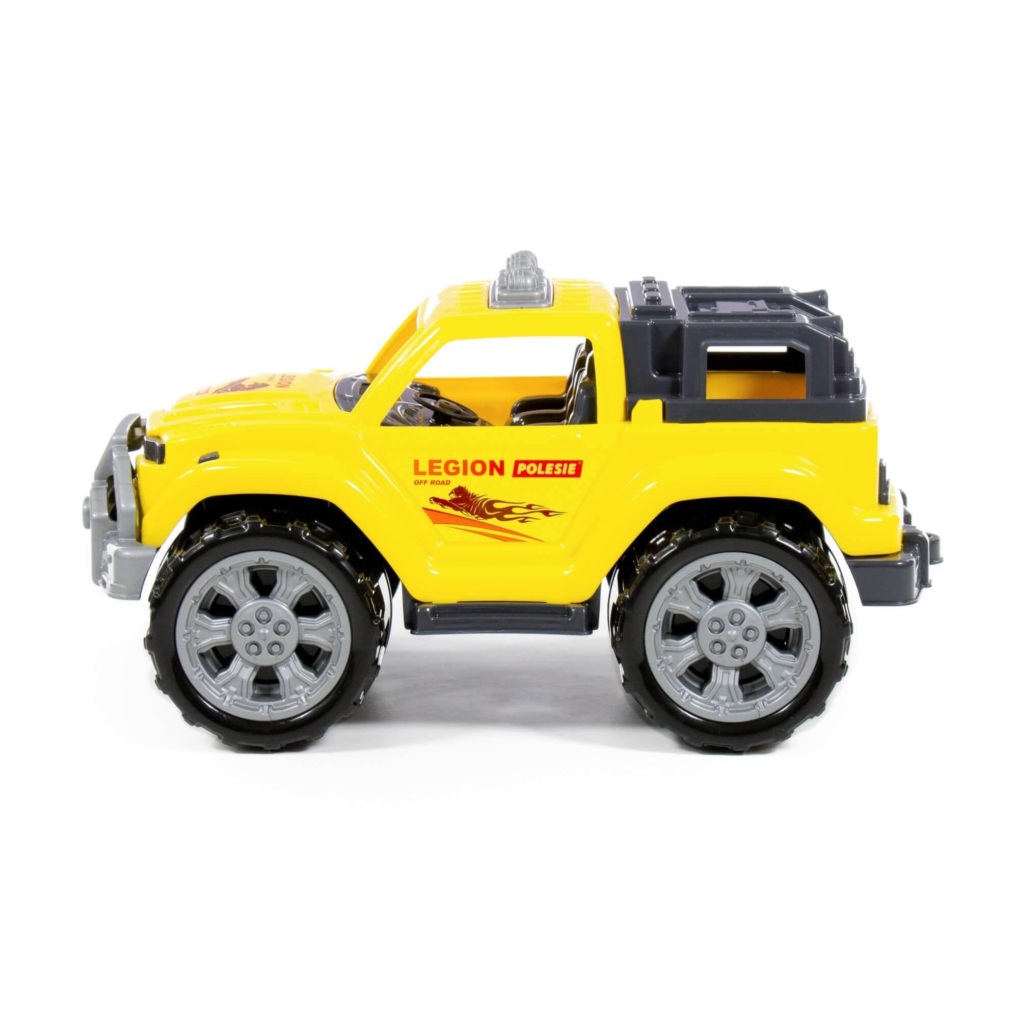 Серия детских игрушечных автомобилей «Легион» от фабрики «Полесье» представлена в виде стильных джипов, адаптированных для моделирования различных сценариев игры. Игрушка машинка для мальчиков имеет реалистичный дизайн, округлую форму деталей.