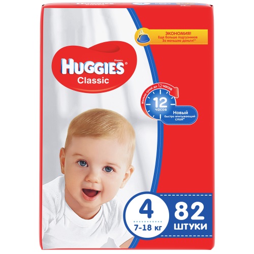 Подгузники Huggies Classic 4 (7-18кг) 82шт.