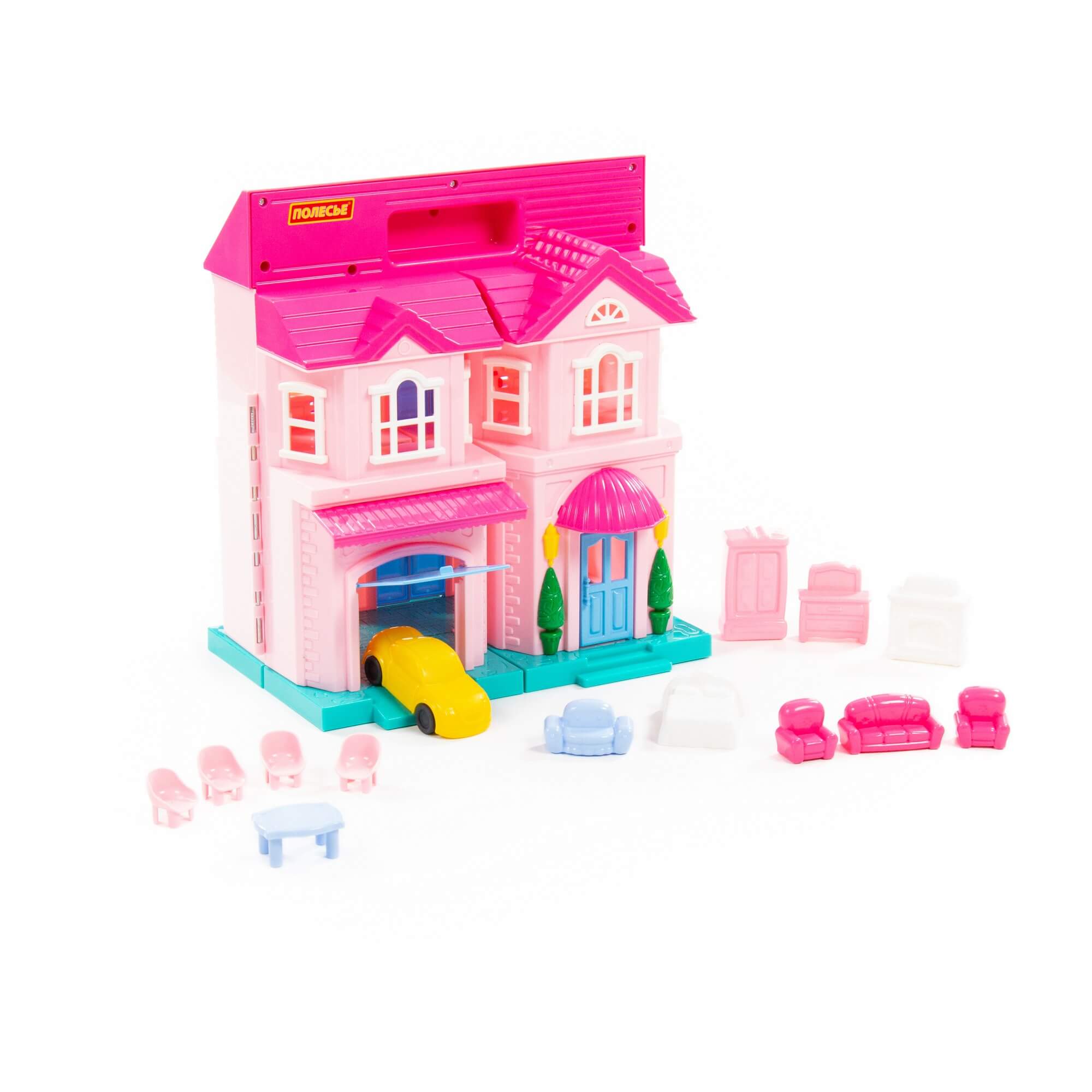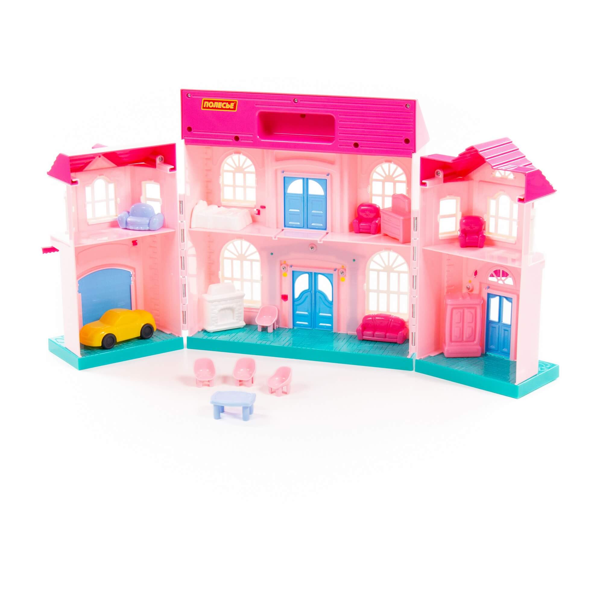 Кукольный домик для девочек с набором мебели и автомобилем от фабрики Полесье отлично дополнит кукольное царство любого ребенка. Игрушечный домик для детей имеет яркий и реалистичный дизайн, изготовлен из высококачественного пластика.