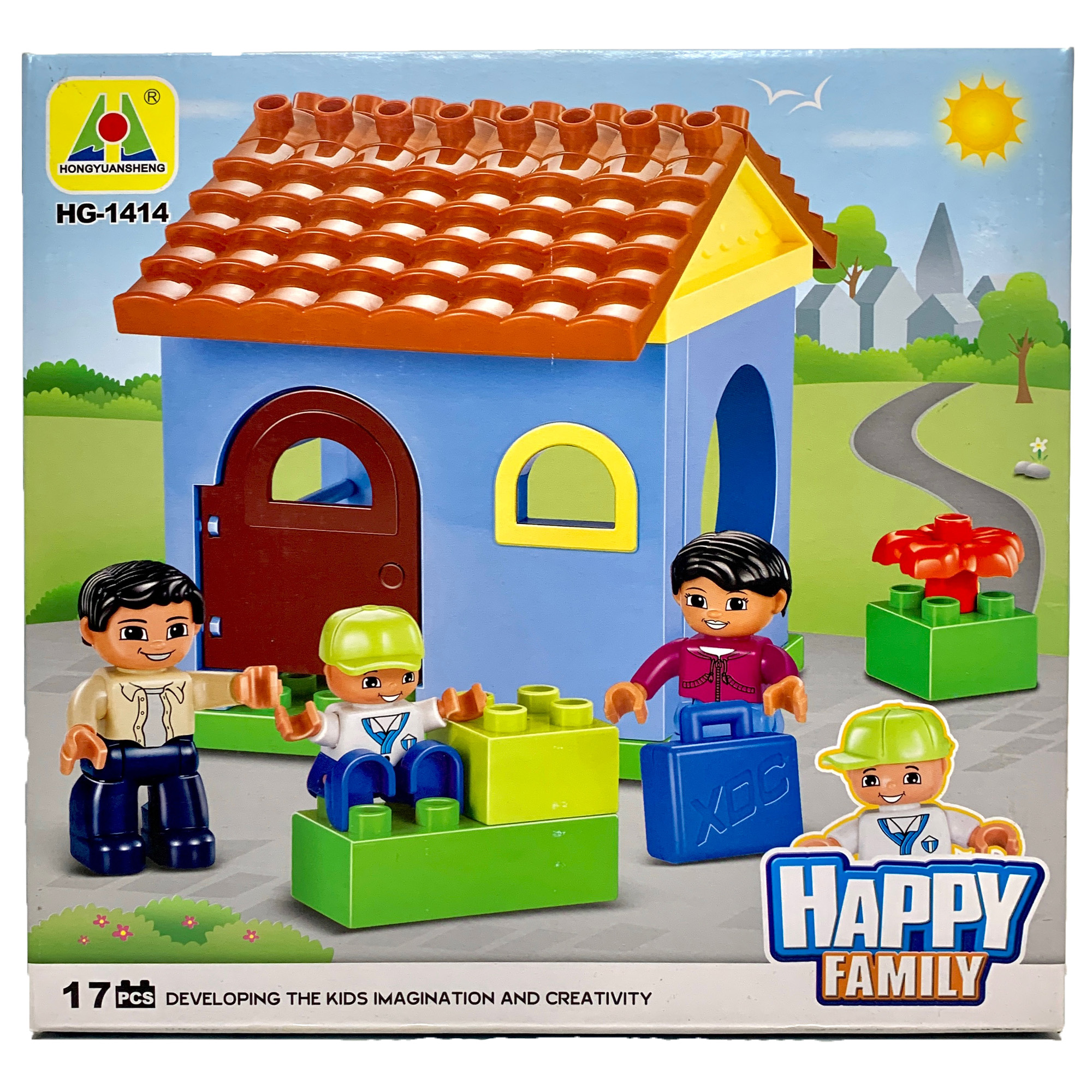 Конструктор Hongyuansheng HG-1414 Happy Family предназначен для самых маленьких детей. Яркие крупные детали сможет соединить между собой даже полуторагодовалый малыш. А с вашей помощью у него получится построить симпатичный голубой домик с красной крышей, в котором проживают три дружных человечка.
