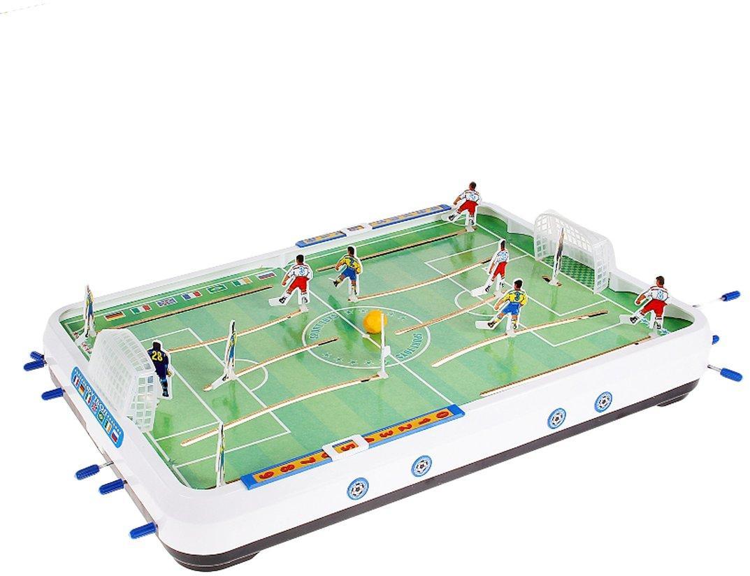 Игровое поле представляет собой футбольную площадку, на которой размещаются 12 футболистов (у каждой команды 3 защитника, 2 нападающих и 1 вратарь). Также в комплекте: игровое поле с панельками подсчета очков для каждой команды; 2 ворот; набор наклеек для футболистов и на игровое поле; 2 мяча.