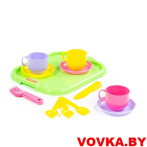 Набор детской посуды "Минутка" с подносом на 3 персоны, артикул 9523, производитель СООО ПП "Полесье", РБ.