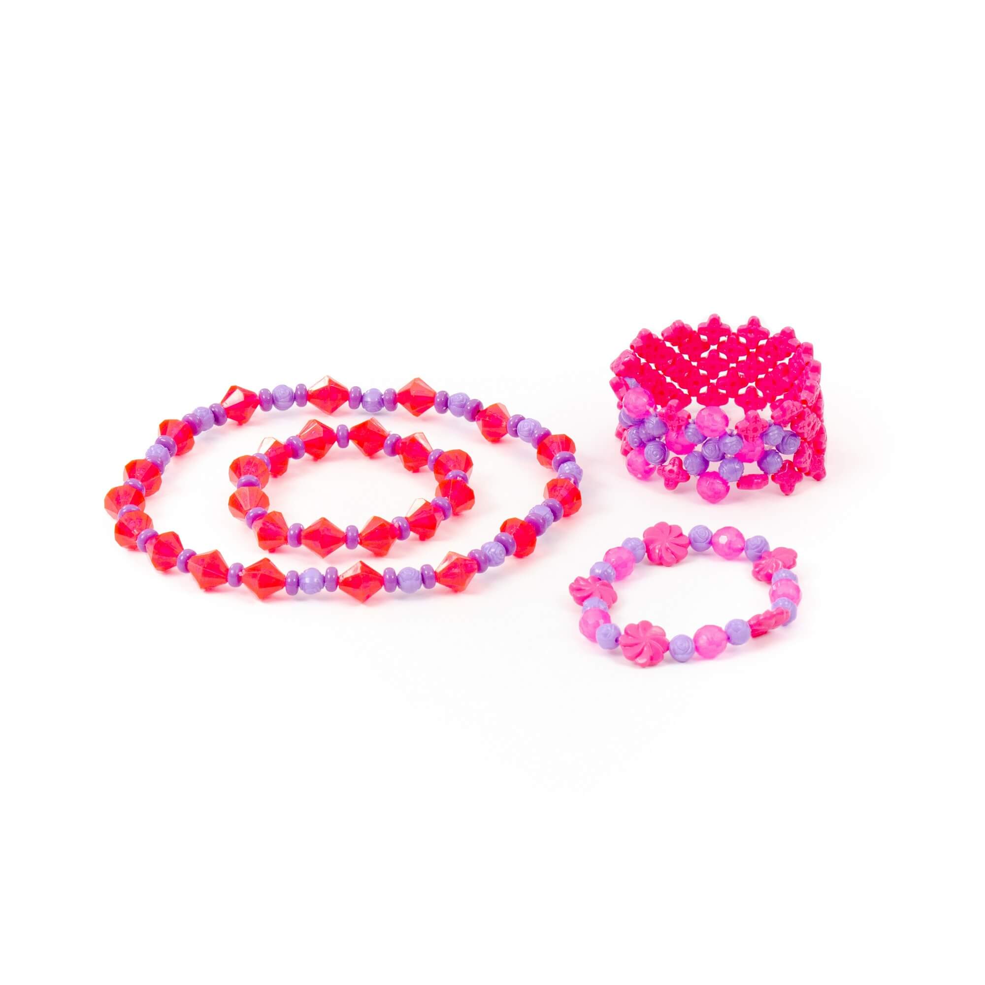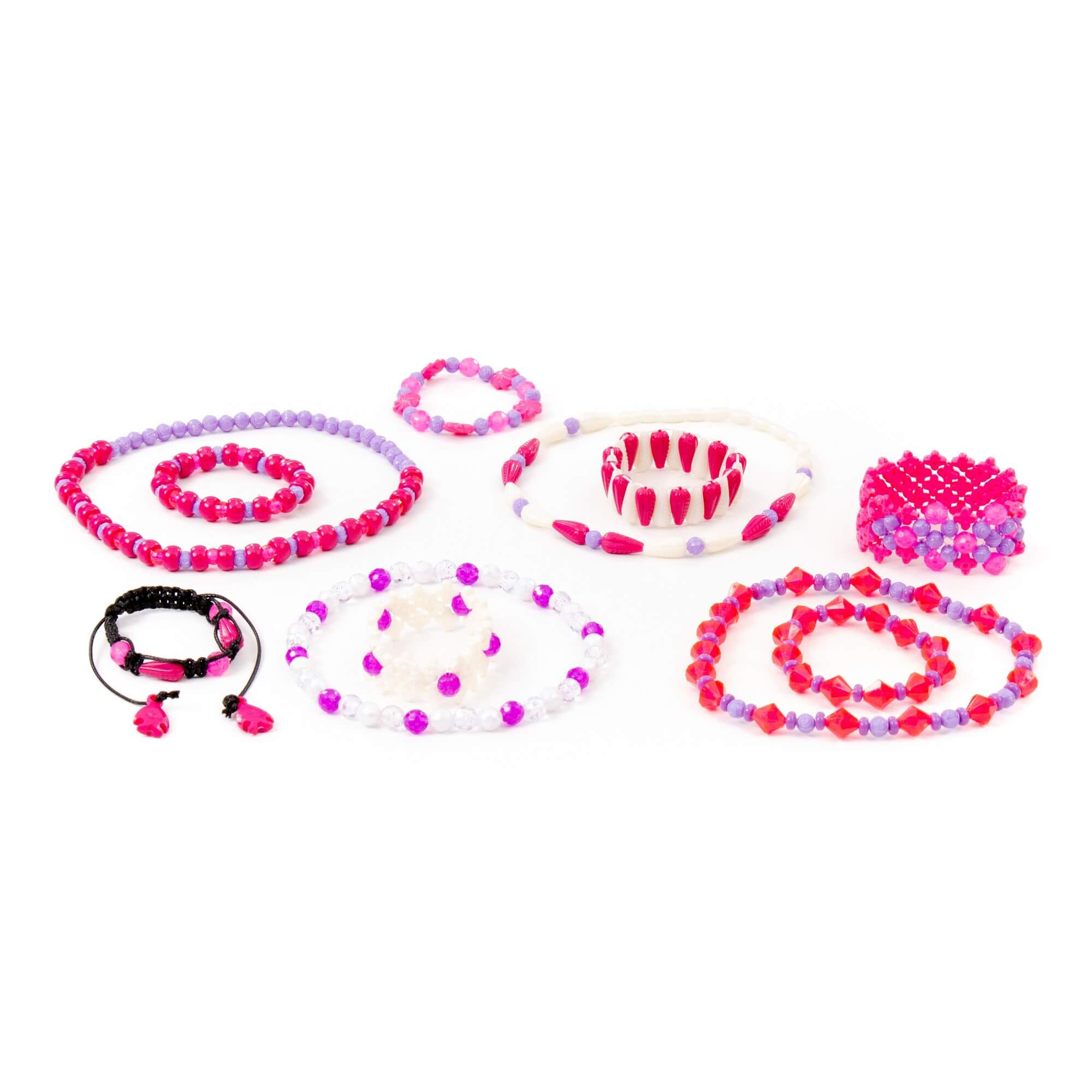 В комплект входит более 500 бусинок, шнурок и резиночка для украшений. Все бусины имеют разную форму и цвет, выполнены из качественного пластика. Разнообразит игру и сделает её ещё интереснее анкета модницы, которая также входит в комплект. Такой набор для плетения позволяет фантазировать, творить, создавать своими руками разнообразные браслеты, фенечки и играть.