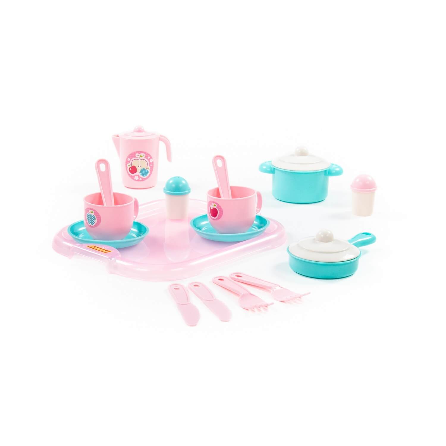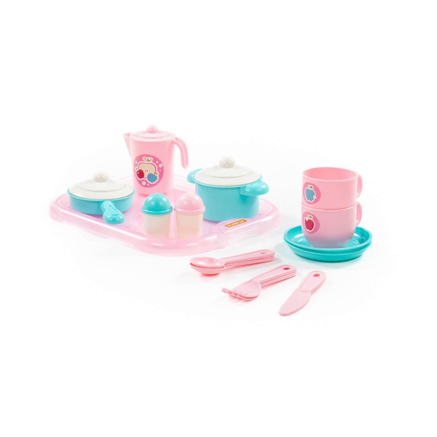 Набор детской посуды "Хозяюшка" с подносом на 2 персоны (V4) (19 элементов) (в сеточке), арт. 80462 Полесье