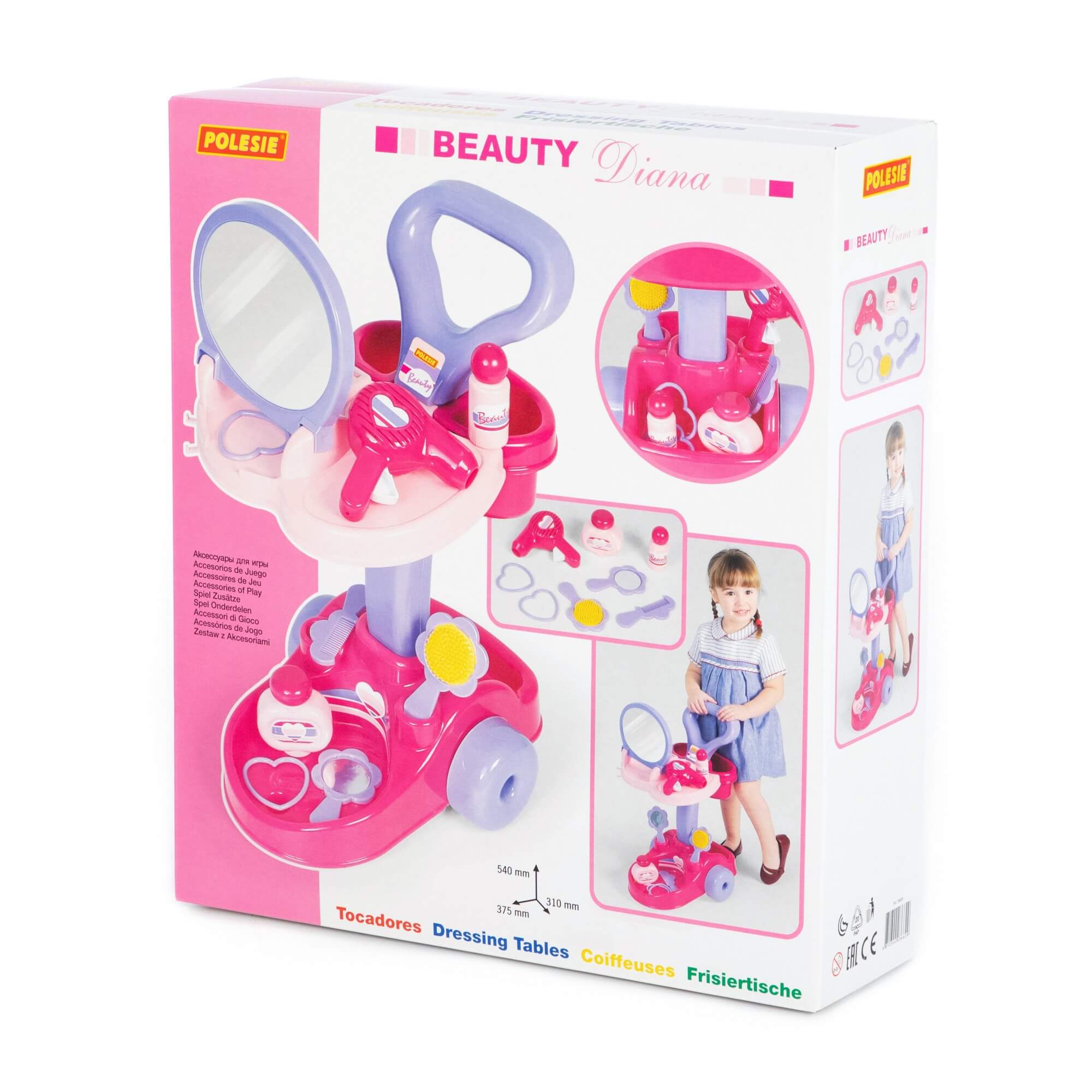 Компактный и мобильный детский салон красоты "Диана" от фабрики Полесье на тележке позволяет организовать девочке свой детский салон красоты. Набор для девочек имеет в комплекте аксессуары для детей:
