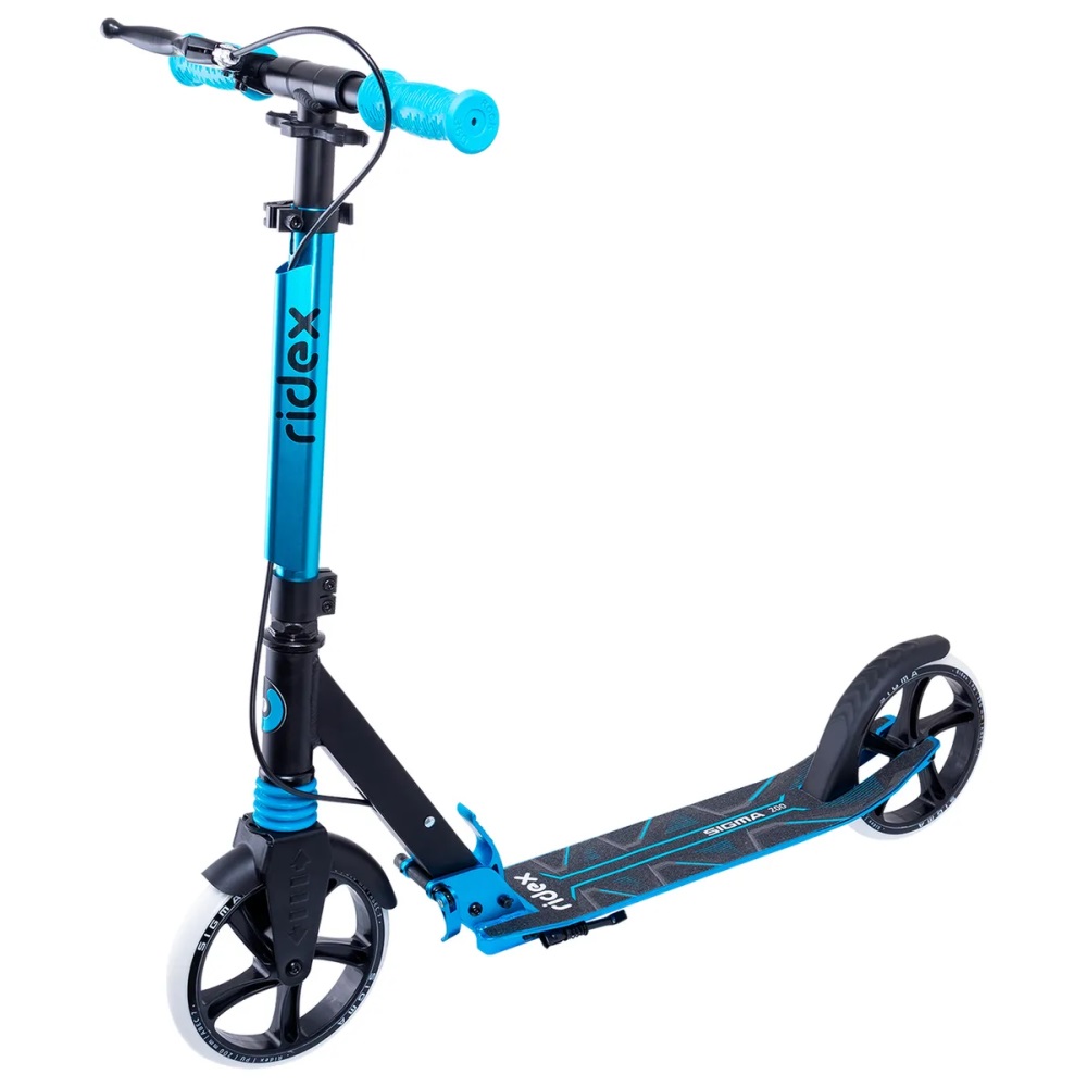 Самокат 2-х колесный RIDEX Sigma 200 мм, ручной тормоз, черный/голубой арт. УТ-00018395