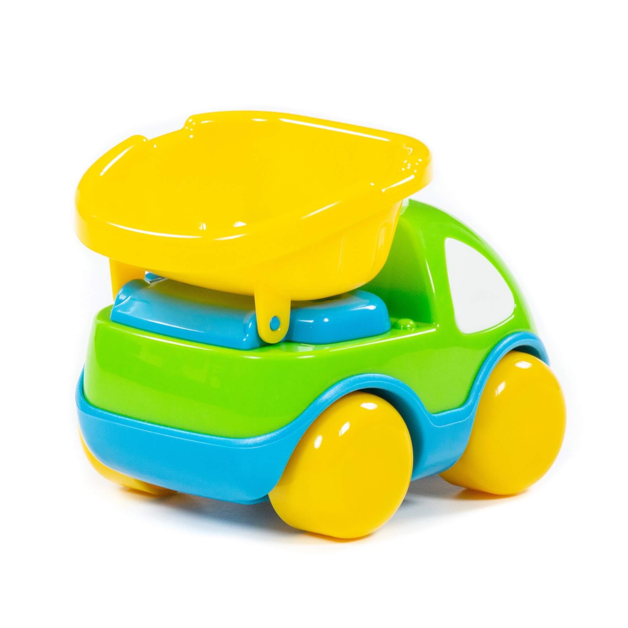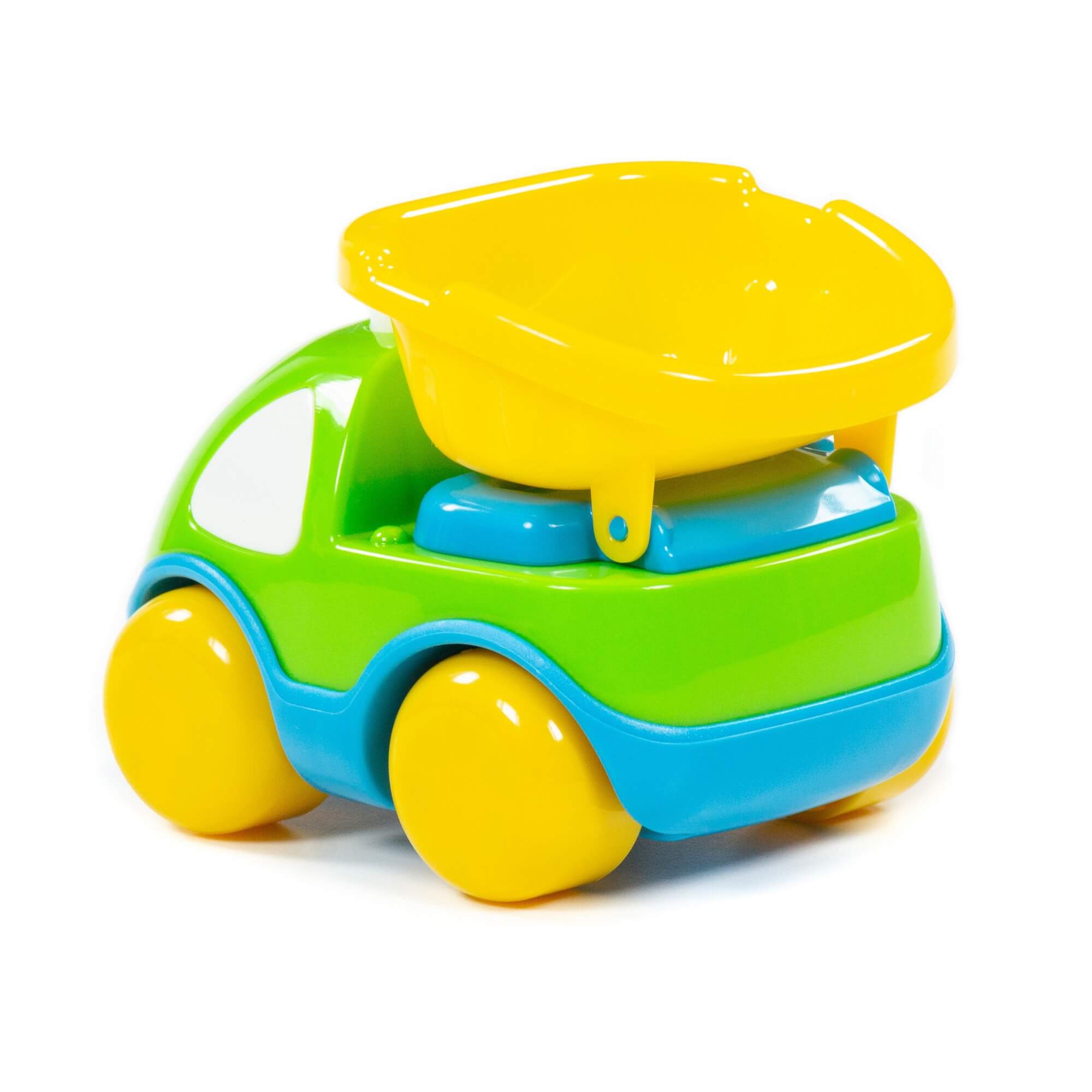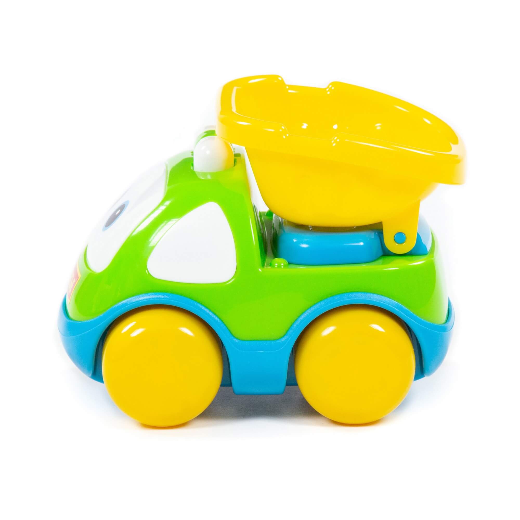 Игрушка машинка выполнена в позитивной цветовой гамме из высококачественных материалов, имеет округлые формы, что делает игру безопасной для Вашего ребенка.