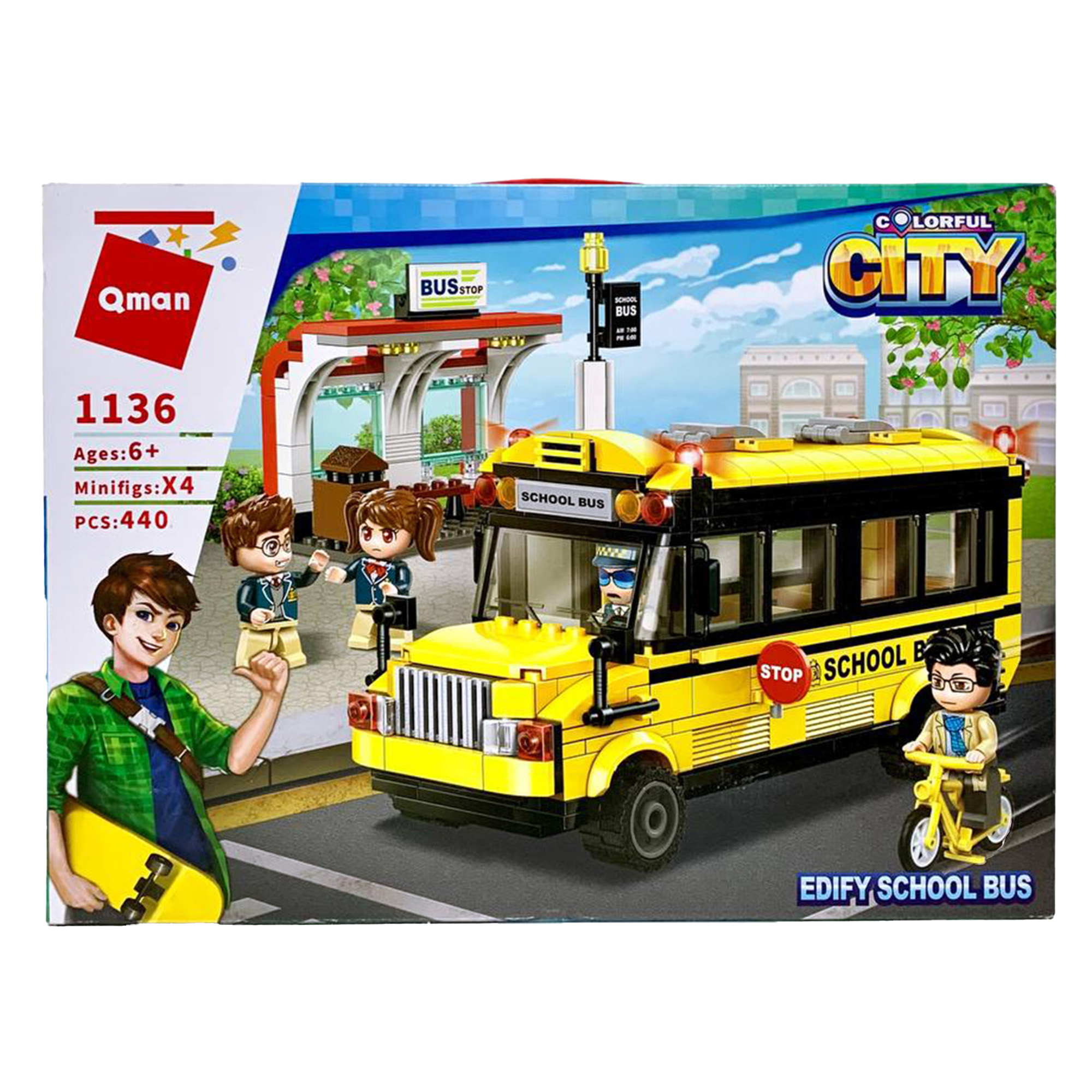 Конструктор Qman школьный автобус с остановкой (440 деталей), арт. 1136