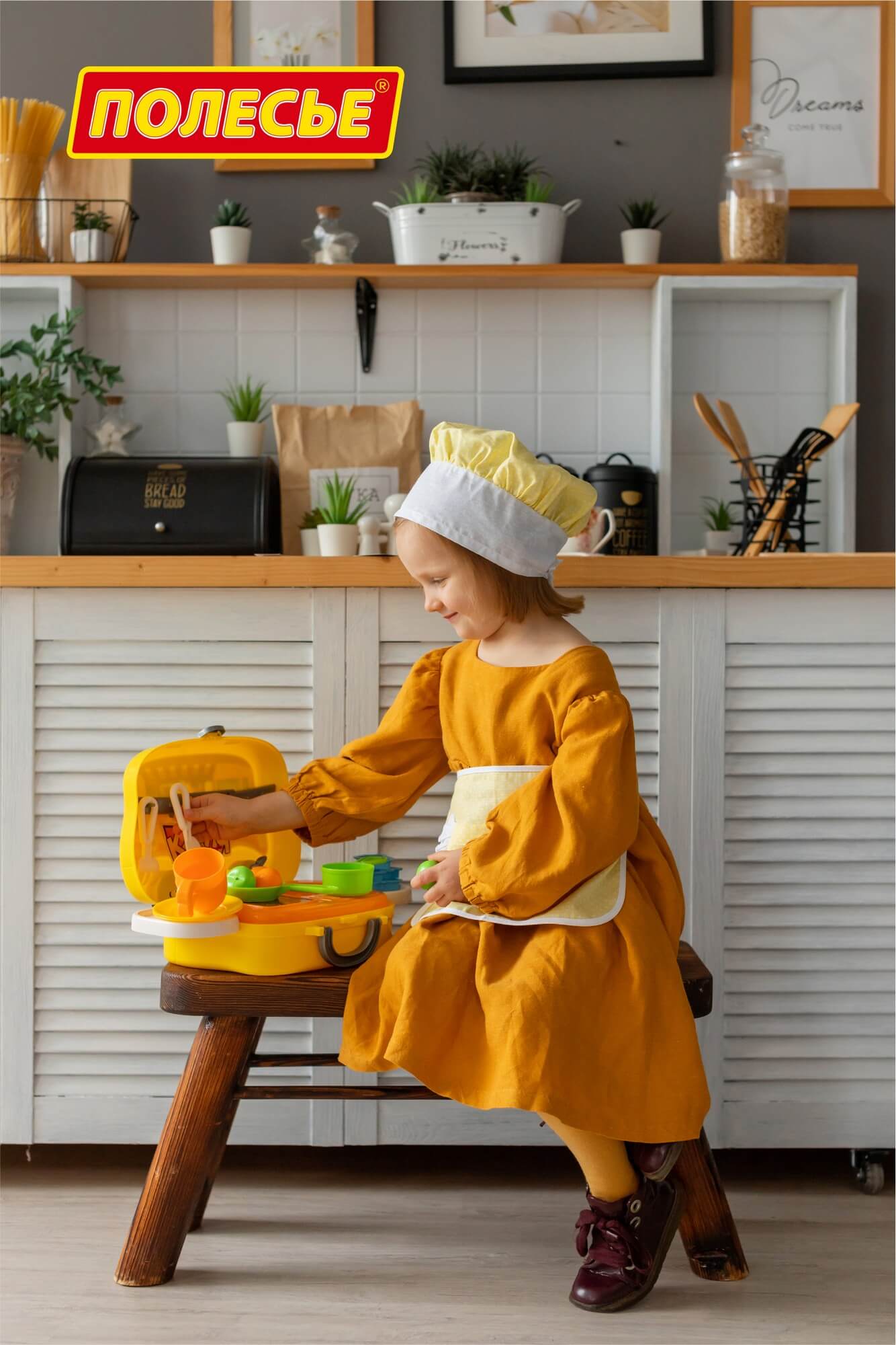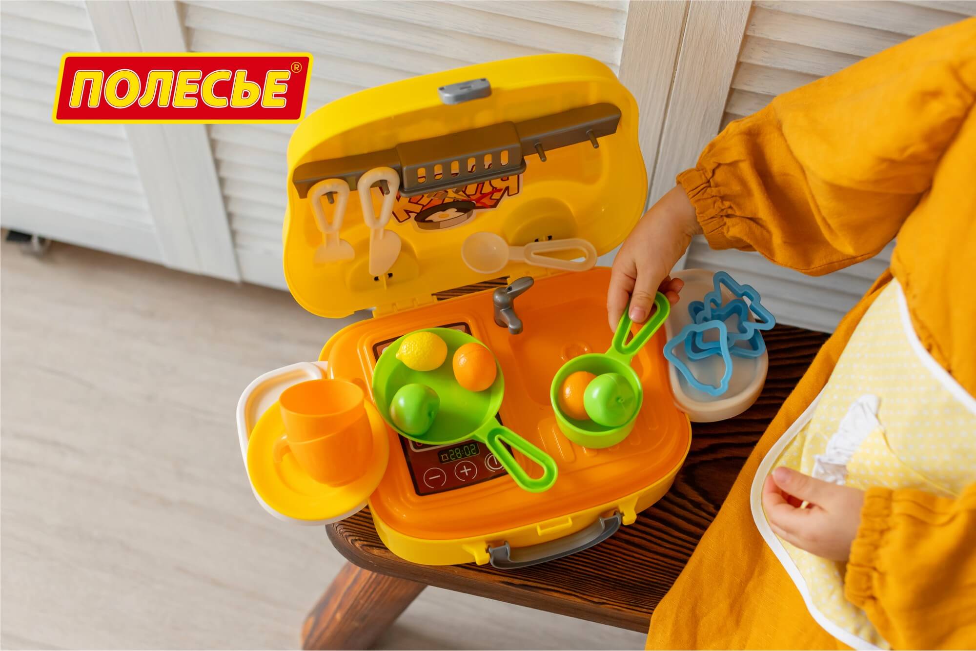 С ярким набором детской посуды от фабрики «Полесье» ребёнок сможет организовать мини-кафе и пригласить друзей. Всё необходимое для этого находится в ярком чемоданчике на колесах. Набор включает в себя 22 элемента: