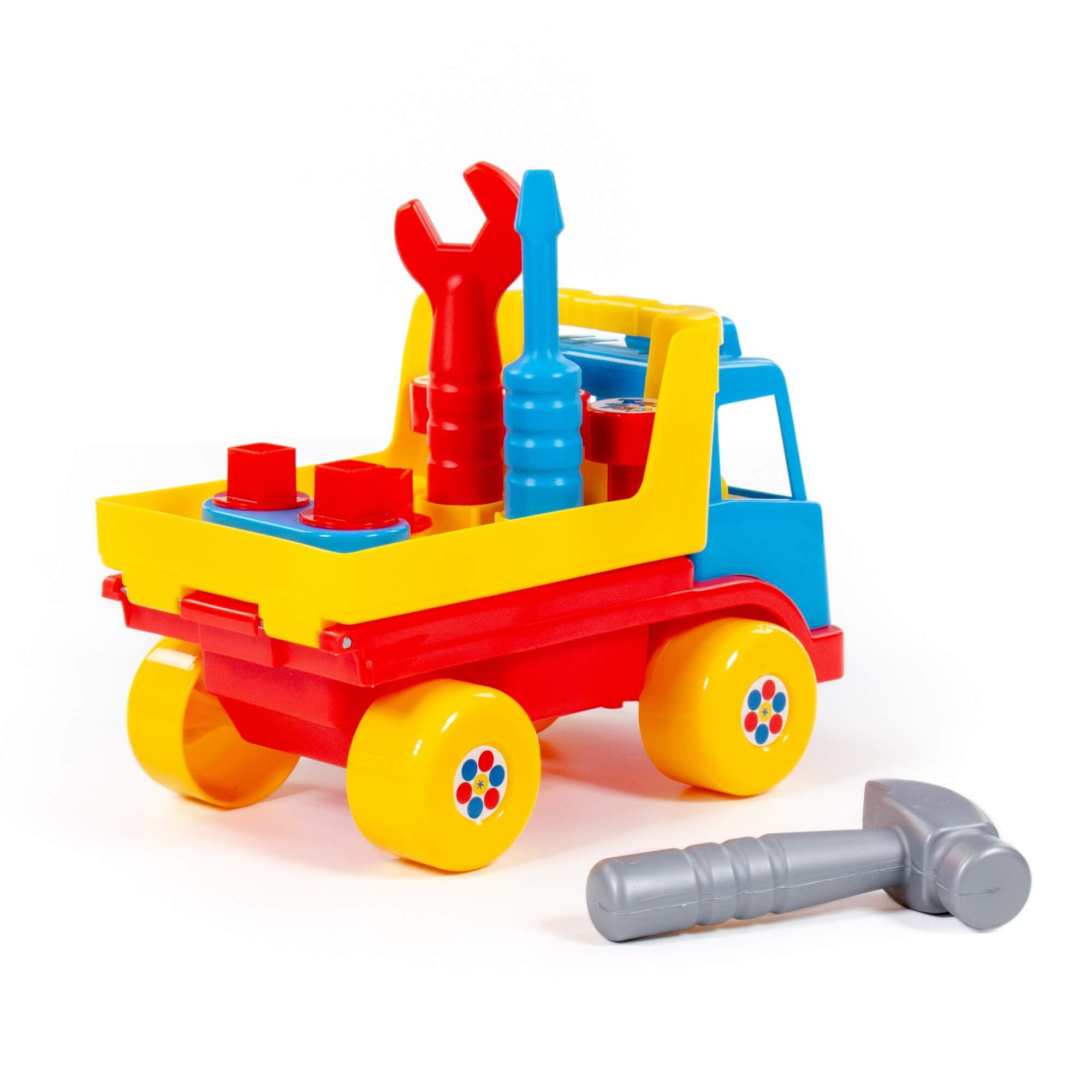 Игрушка автомобиль для малышей знакомит с работой и назначением основных слесарных инструментов, развивает моторику рук, логику, память, воображение.