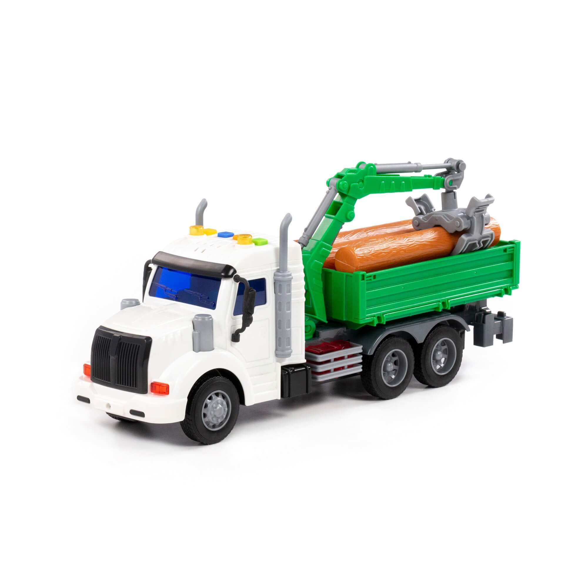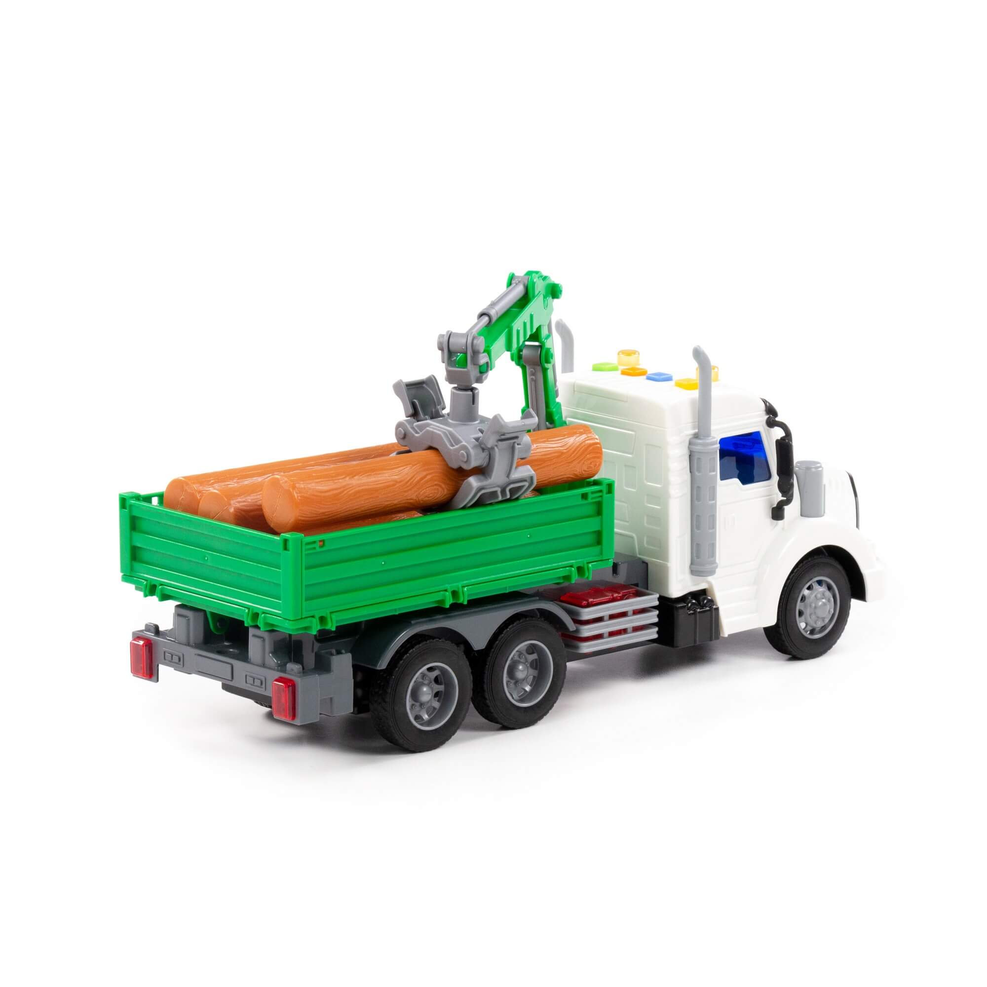 Игрушка машинка Профи для мальчиков - замечательный подарочный вариант лесовоза. Ребёнку будет интересно разгружать и загружать брёвна манипулятором.