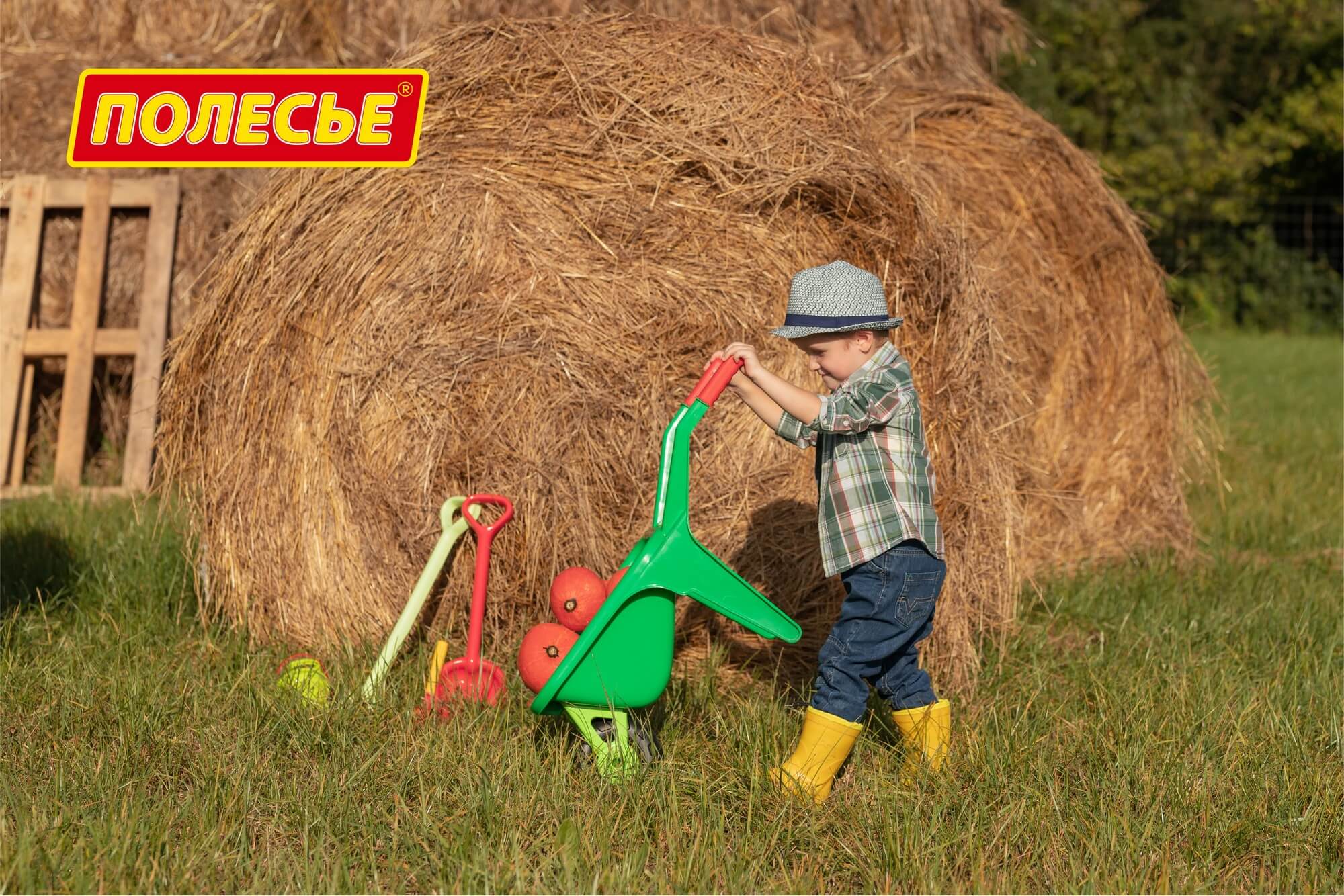 Малыш будет ощущать себя настоящим садоводом, можно собирать в тачку скошенную с газона траву, опавшие с деревьев листья или снег.