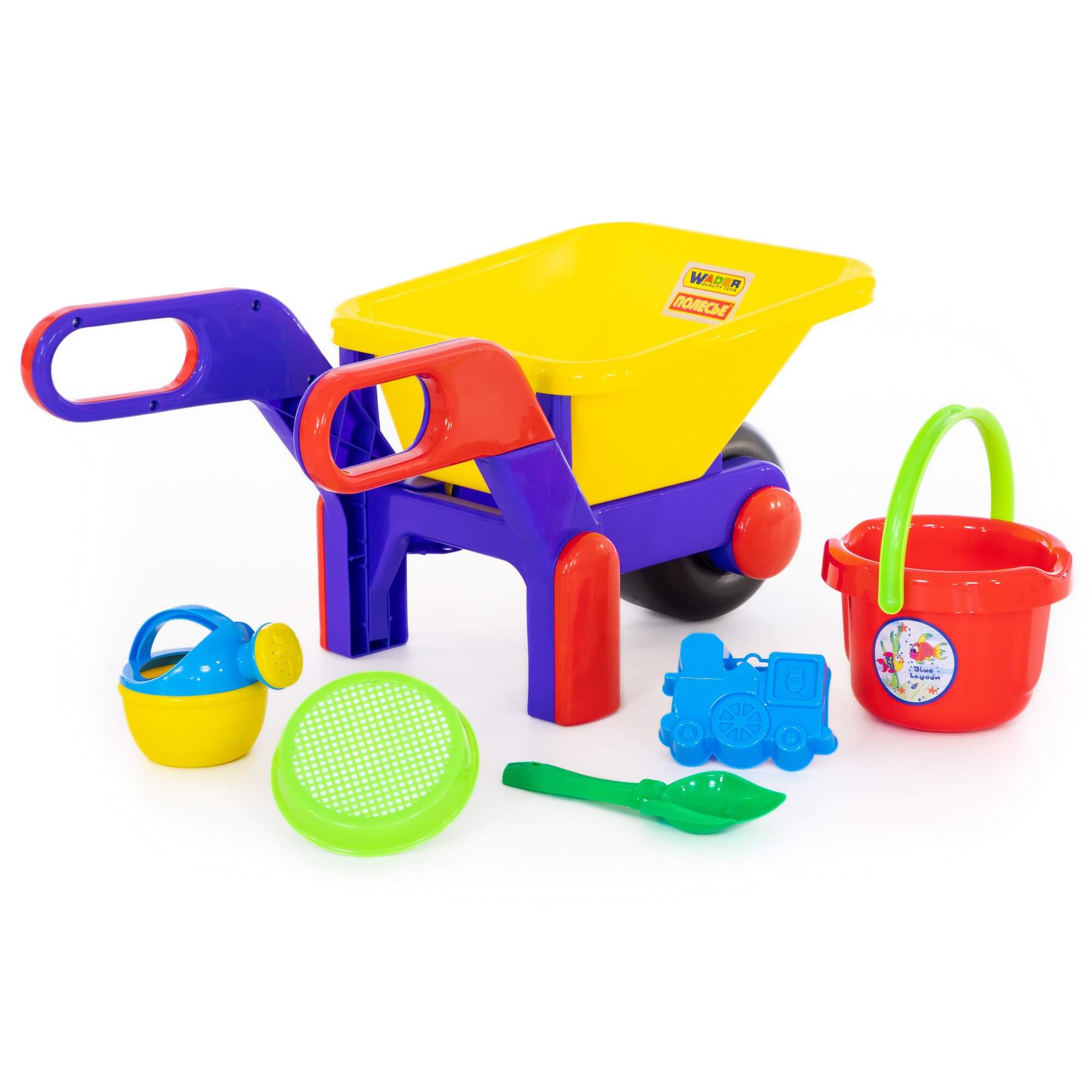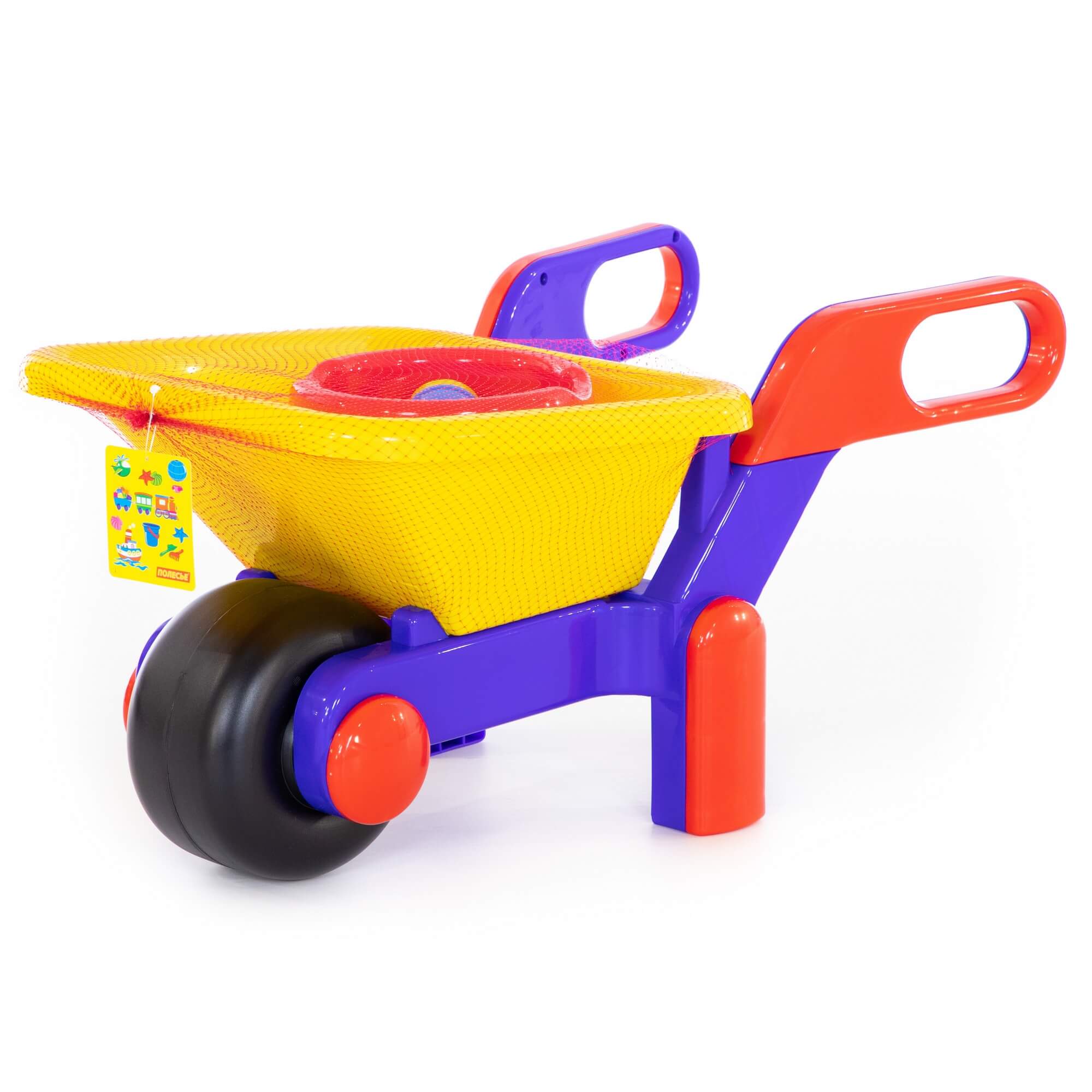 Также такая тачка - отличная осенняя и зимняя игрушка, позволяющая ребенку собирать листья и снег.В состав набора для детей от фабрики Полесье входят: