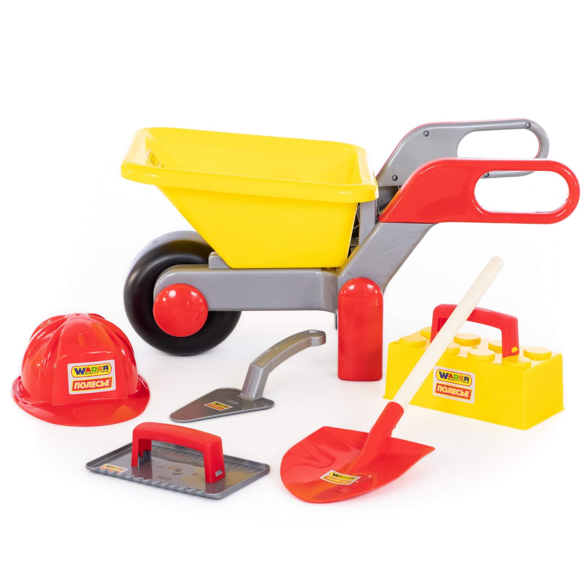 Тачка №4 с игрушечным набором строительных инструментов и принадлежностей от фабрики Полесье настолько реалистична, что малыш во время игры почувствует себя настоящим каменщиком. Кроме того, в тачке можно перевозить другие игрушки. В комплекте с детской игрушечной тачкой идёт набор каменщика для мальчиков, который включает в себя: