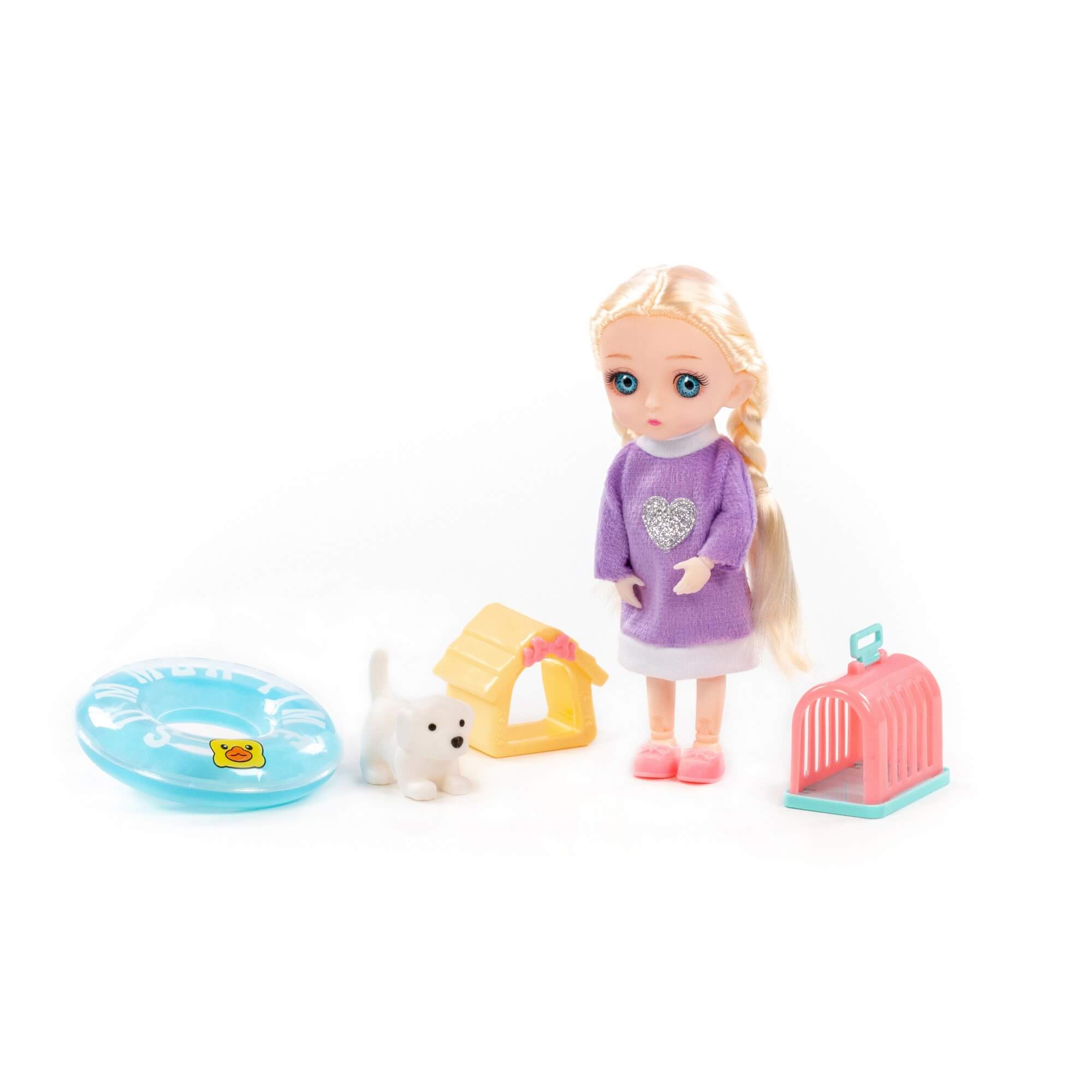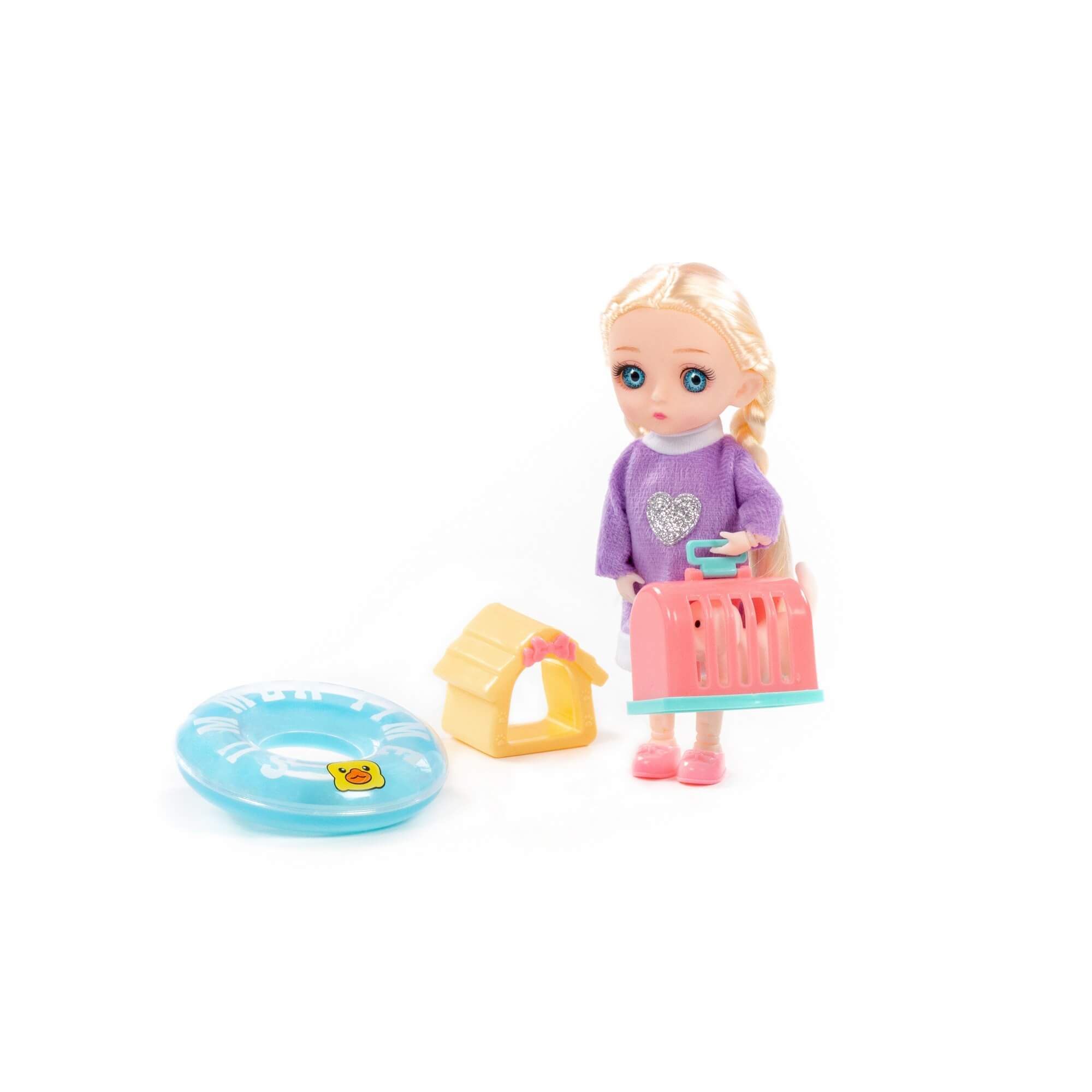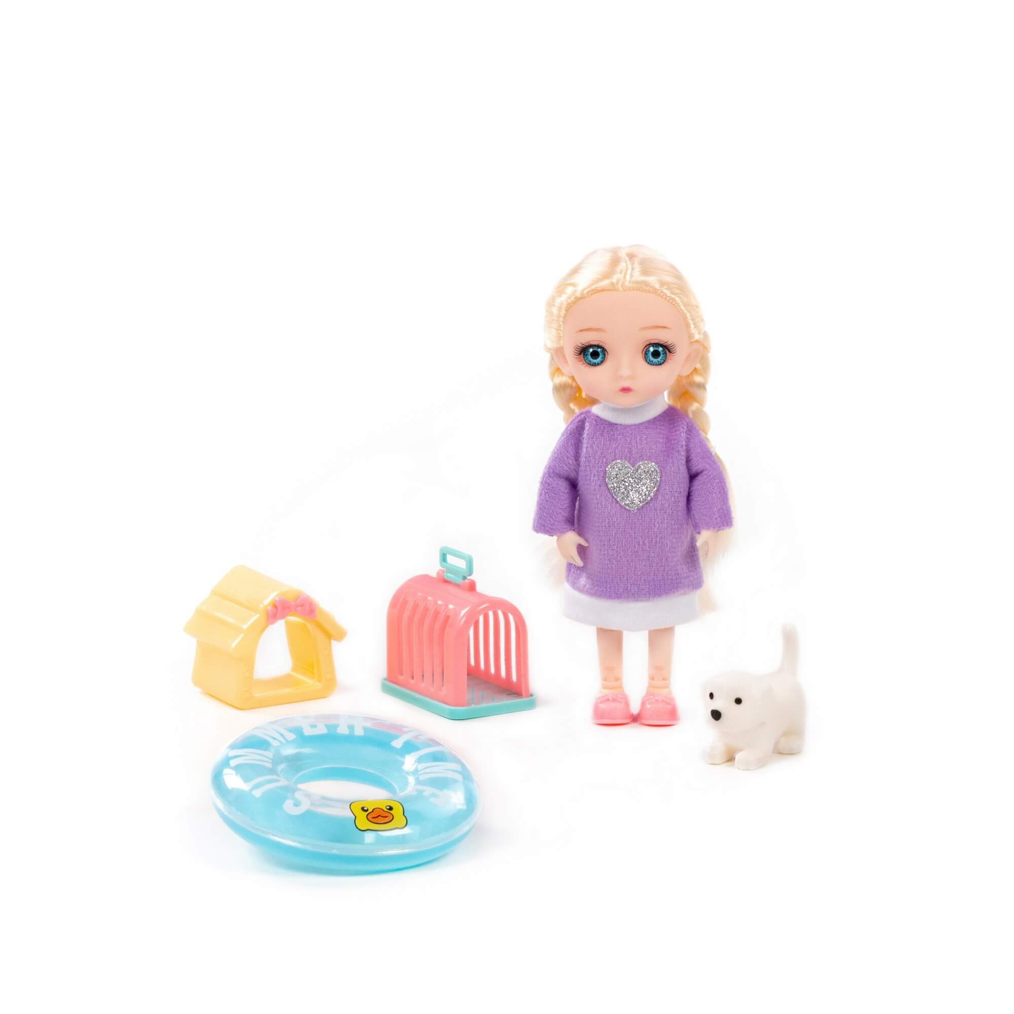 В наборе с куклой идут игрушечный спасательный круг для безопасного купания, милый песик с уютным домиком и переноской для комфортного перемещения питомца. Благодаря наличию тематических аксессуаров для кукол ребенок может придумать множество необычных и интересных сценариев игры.