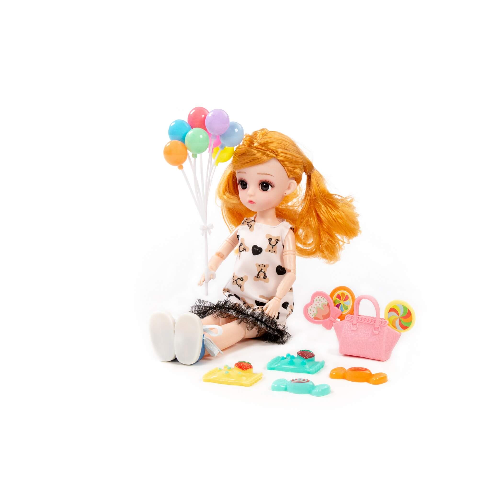 В наборе с куклой представлены игрушечная сумка, воздушные шарики для идеальной вечеринки, много сладостей, чтобы угостить всех кукол.