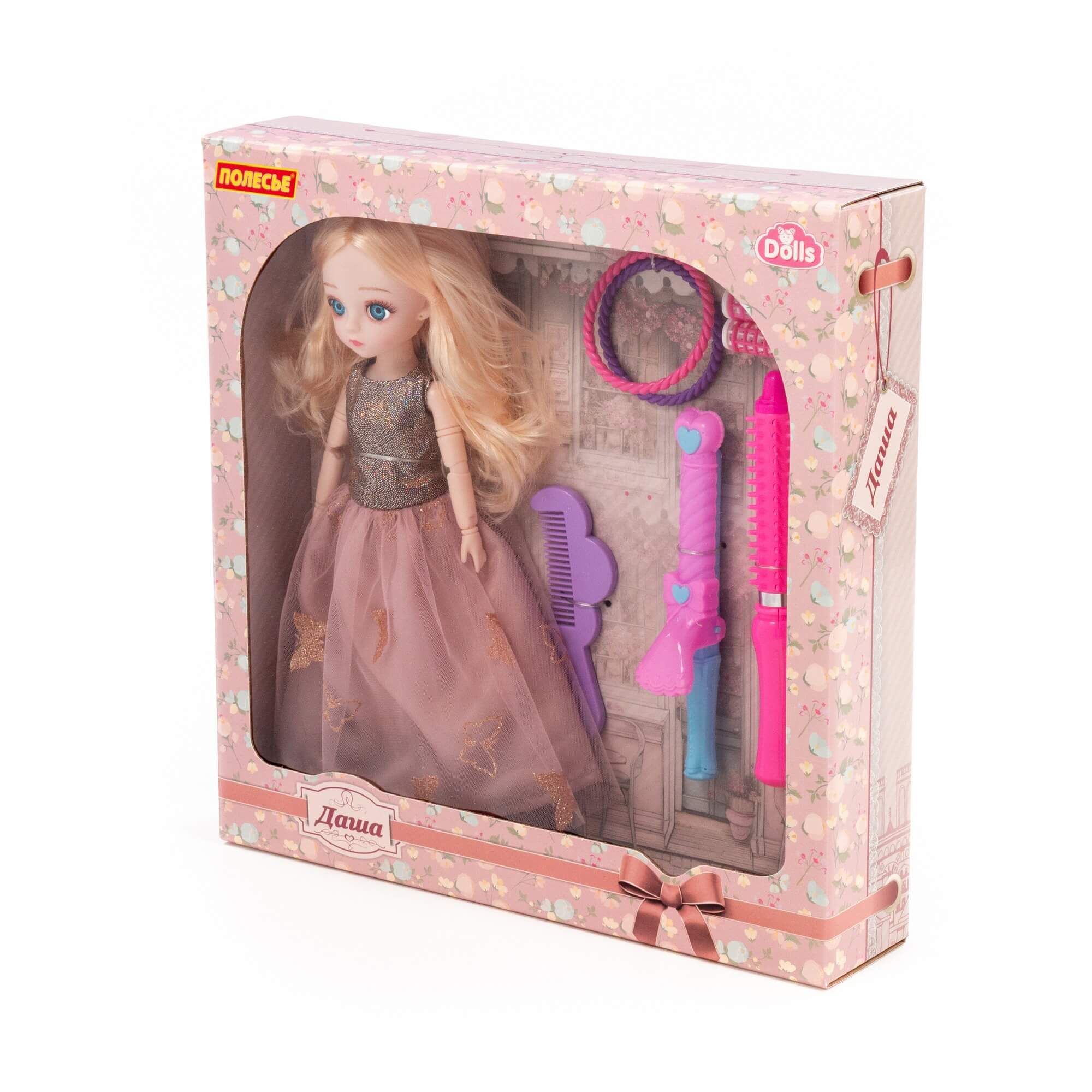 Кукла "Даша" (29 см) в пышном платье + аксессуары (8 элементов) (в коробке №3), арт. 03038 Полесье