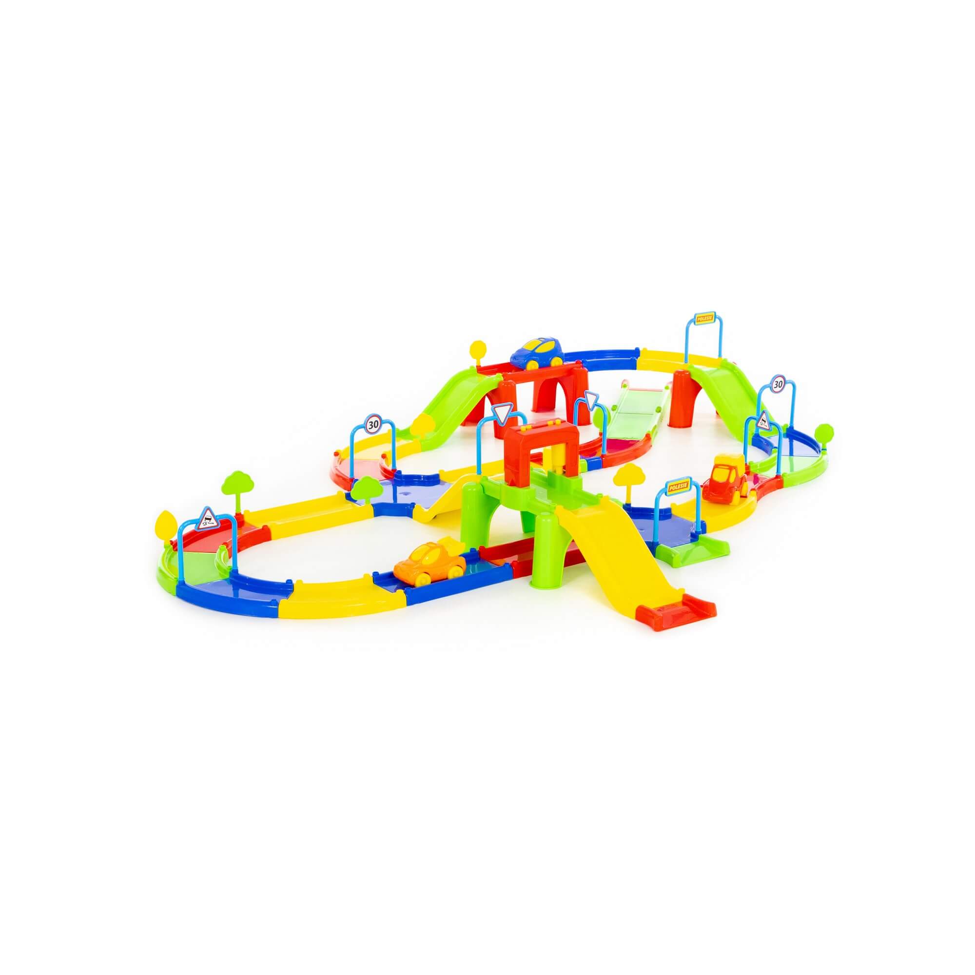 Детский игровой комплекс от фабрики Полесье представлен в виде яркого сборного гоночного трека для мальчиков.