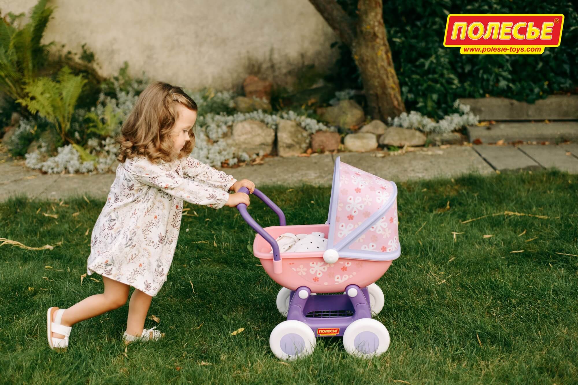Четырехколесная коляска для пупсов и кукол "Arina" имеет стильный дизайн, внешний вид максимально приближен к настоящему. Все детали коляски надежные и прочные. Под люлькой находится корзина для вещей.