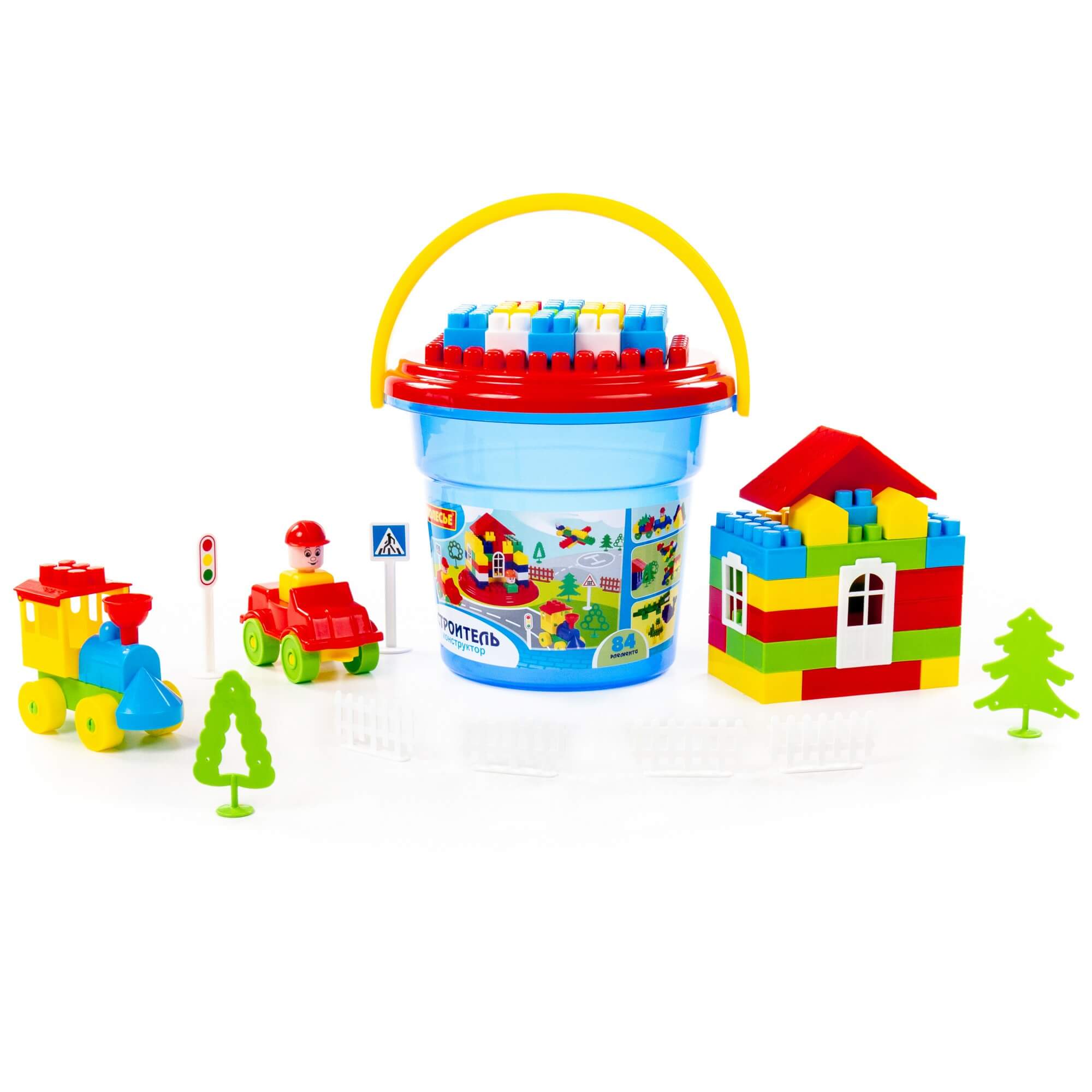 Конструктор "Строитель" (84 элем. в ведре "Макси" с крышкой) арт. 37213 Полесье
