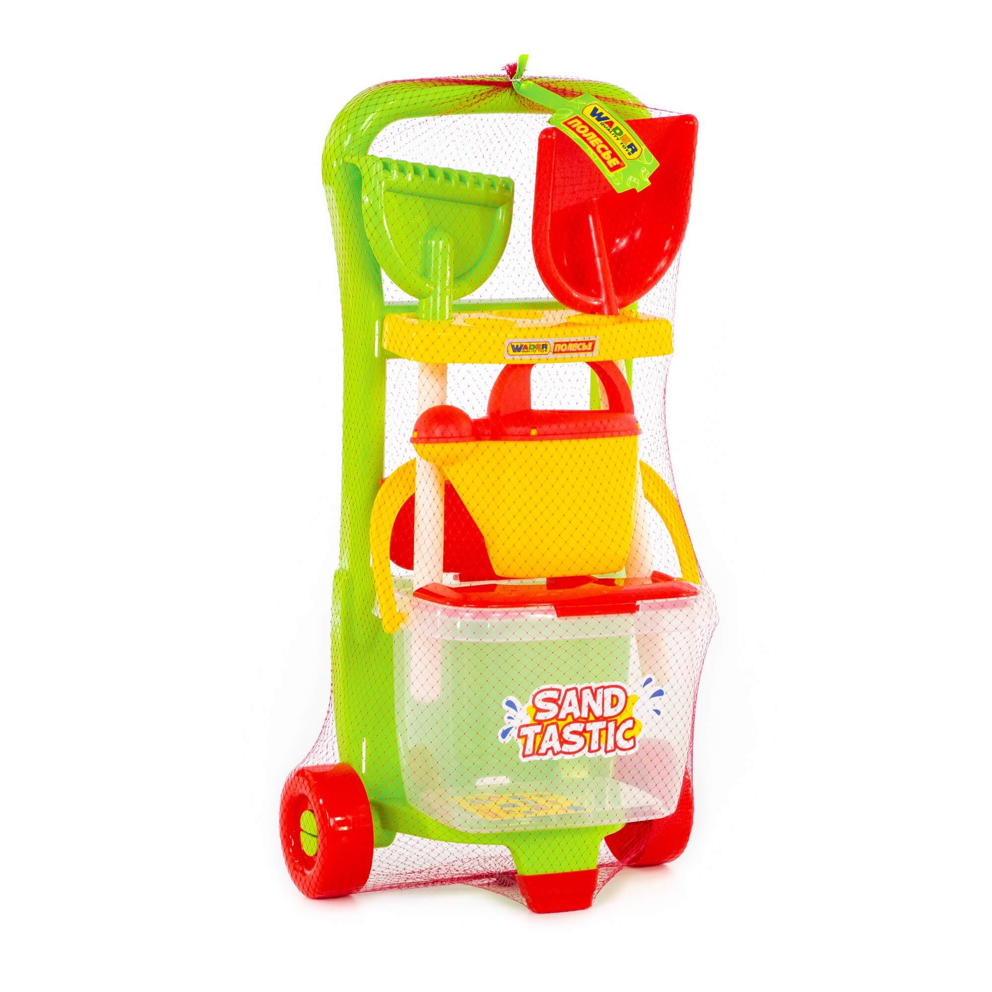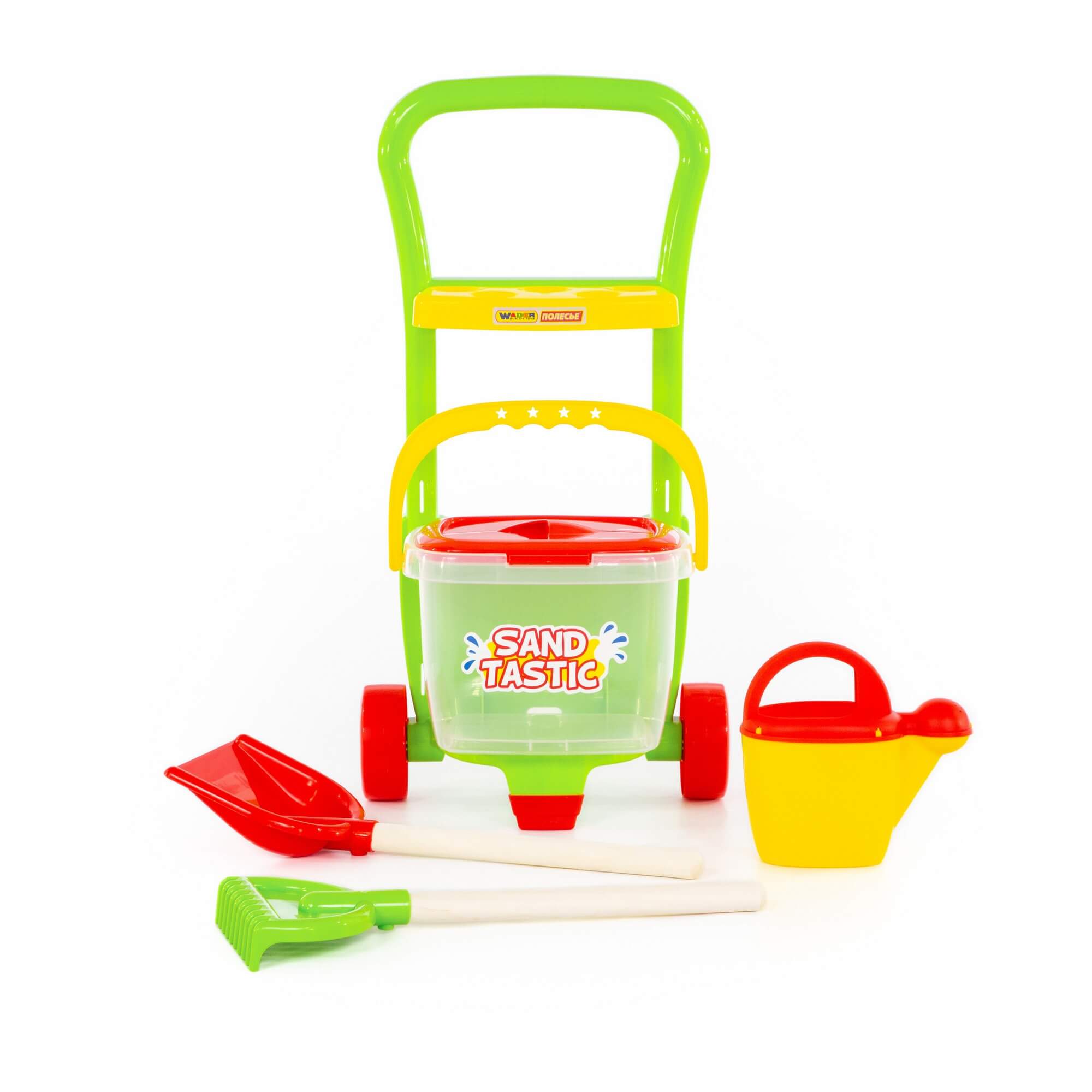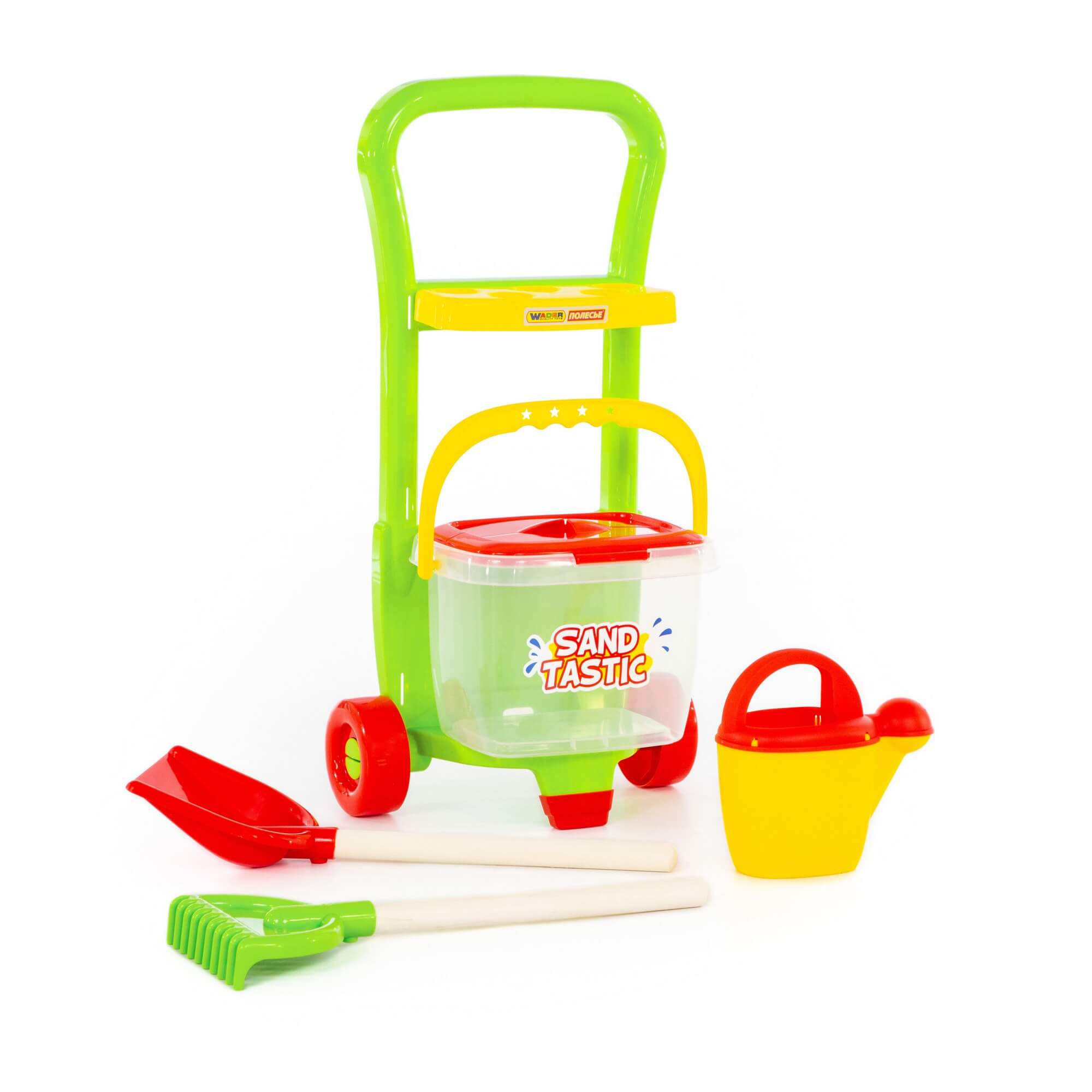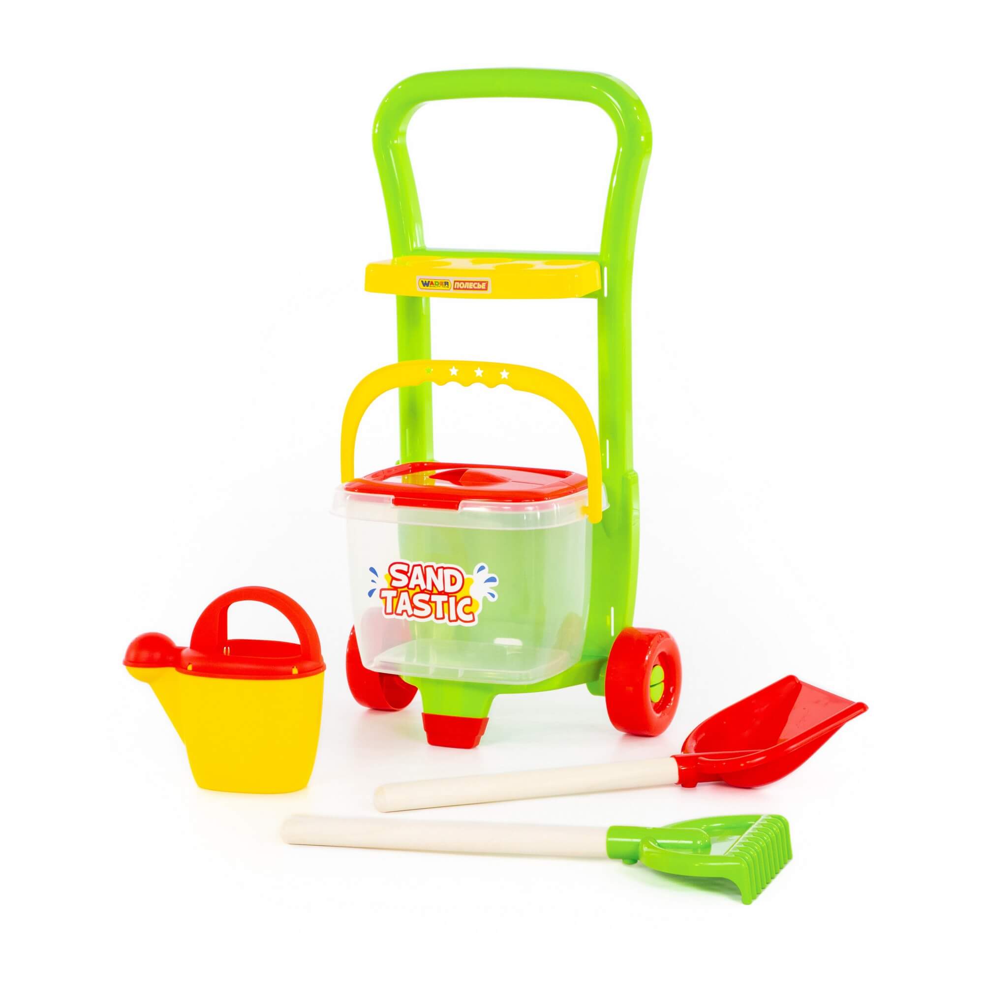 Набор №394 "Sand Tastic": Тележка "Caddie", лопата №15, грабли №15, ведро №8, лейка №10, артикул 38340.