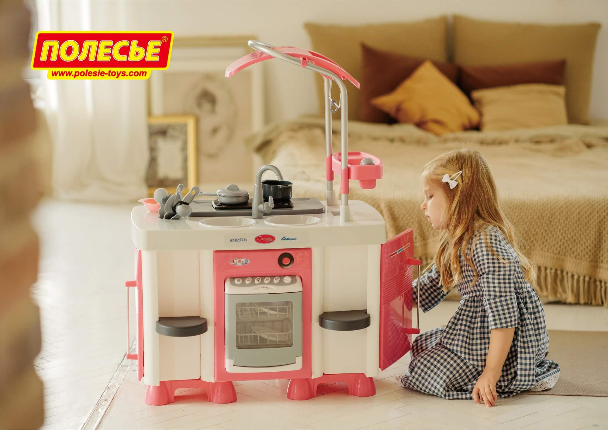 Детский игровой набор для девочек «Carmen» №7 с игрушечной посудомоечной машиной и варочной панелью от фабрики "Полесье" состоит из одного модуля, который включает в себя: