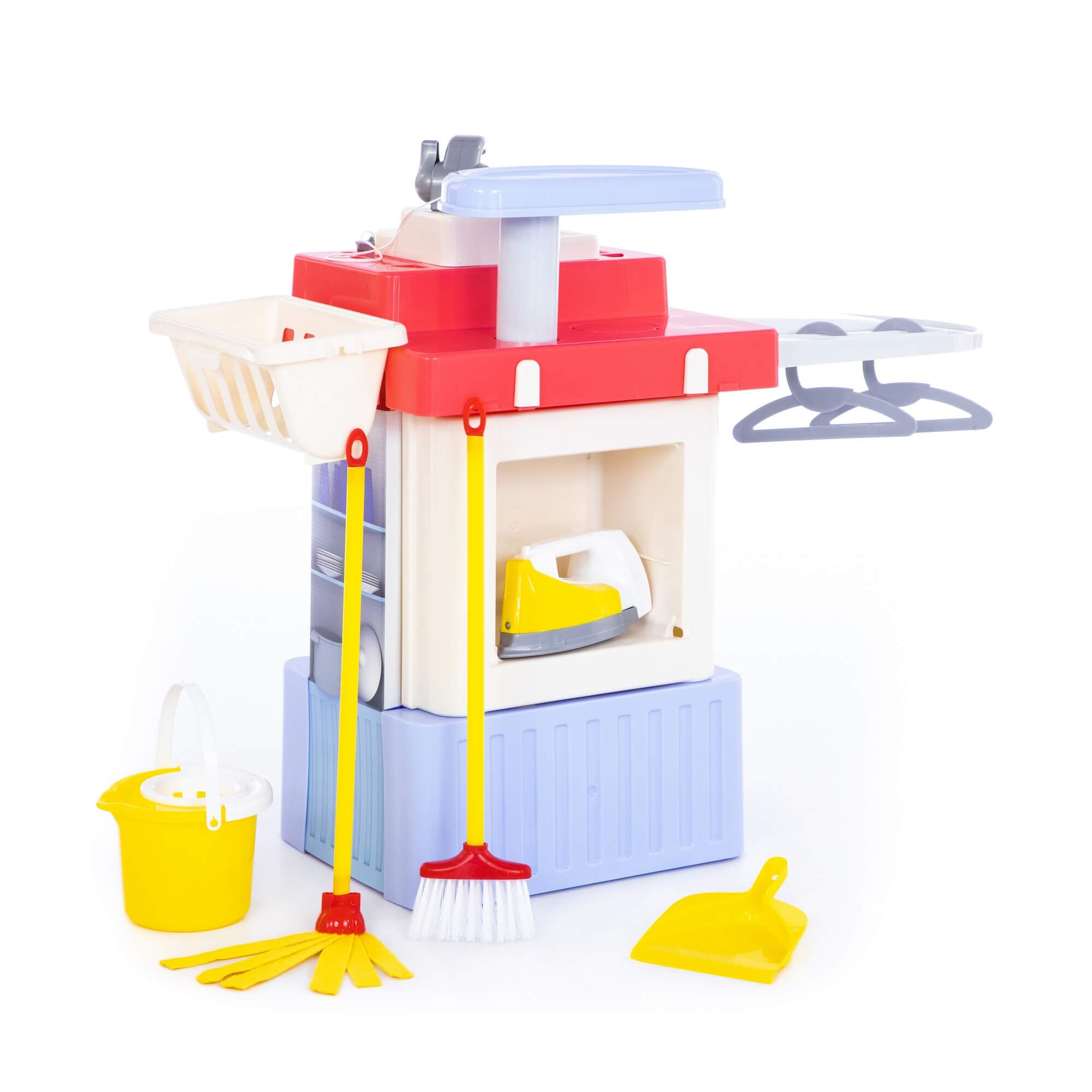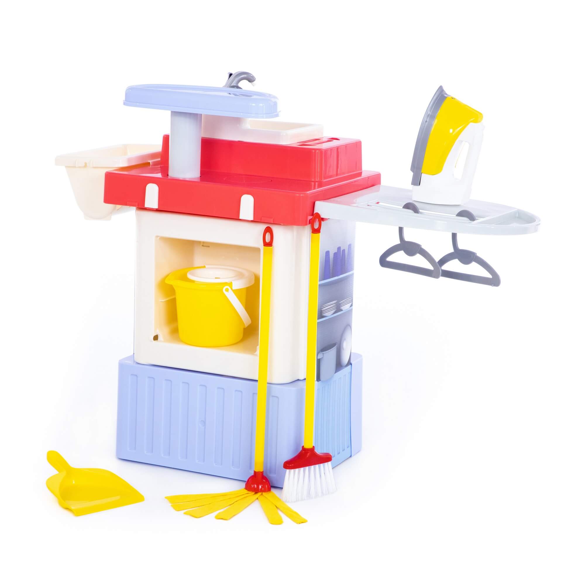 Игровой комплекс для маленькой хозяйки от фабрики Полесье включает в себя электронный кран с насосом. Можно налить воду в емкость под мойкой, опустить кран и из него побежит вода.