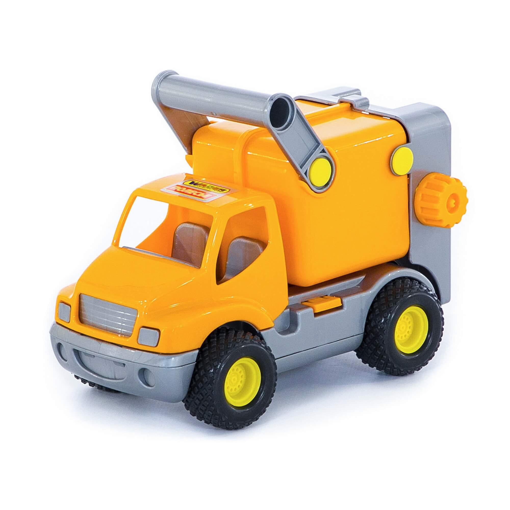 Яркий, надежный детский игрушечный автомобиль для мальчиков коммунальный «КонсТрак» от фабрики «Полесье» обращает на себя внимание.