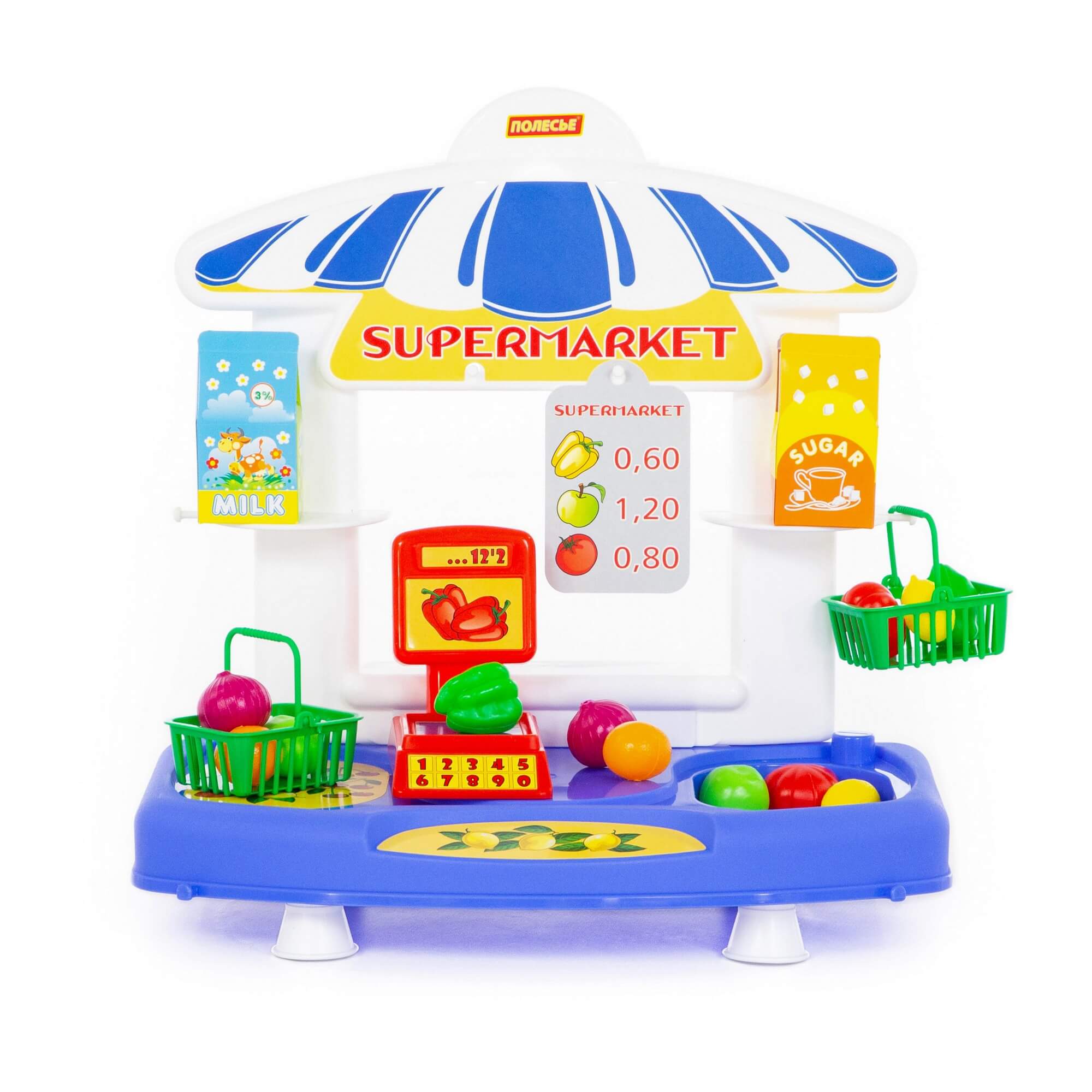 Настольный набор "Супермаркет" от фабрики Полесье представляет собой маленький прилавок с весами и корзинками для покупок.Набор понравится и мальчикам и девочкам, ведь играть в магазин любят все дети.