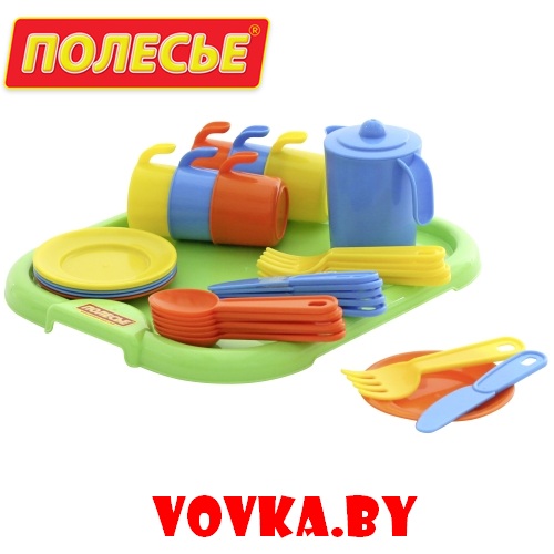 Набор детской посуды "Анюта" с подносом на 6 персон, артикул 3896, бренд и производитель СООО ПП "Полесье".
