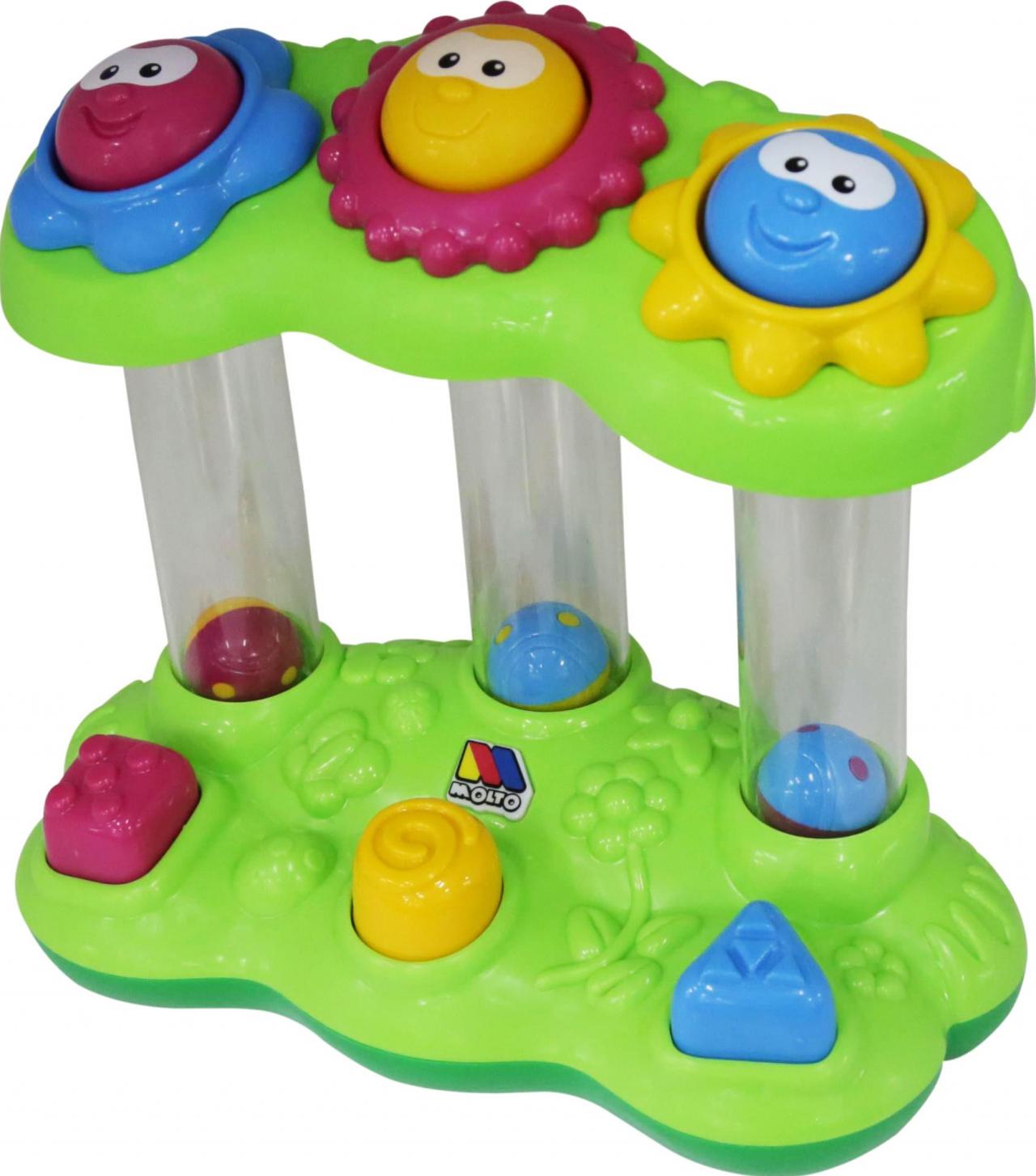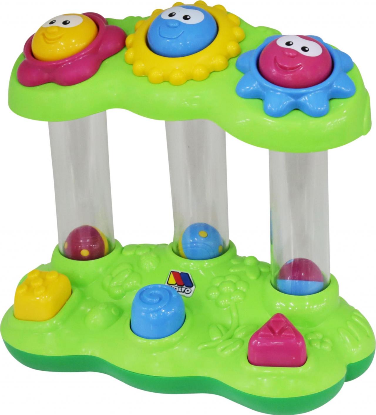 Цветочки «сидят» на прозрачной ножке, а внутри нее – шарик в цвет лепесткам. Когда ребенок нажимает соответствующую кнопку, он не только слышит музыку, но и видит, как шарик подпрыгивает. Это радует, удивляет и заставляет нажимать на кнопку снова и снова!