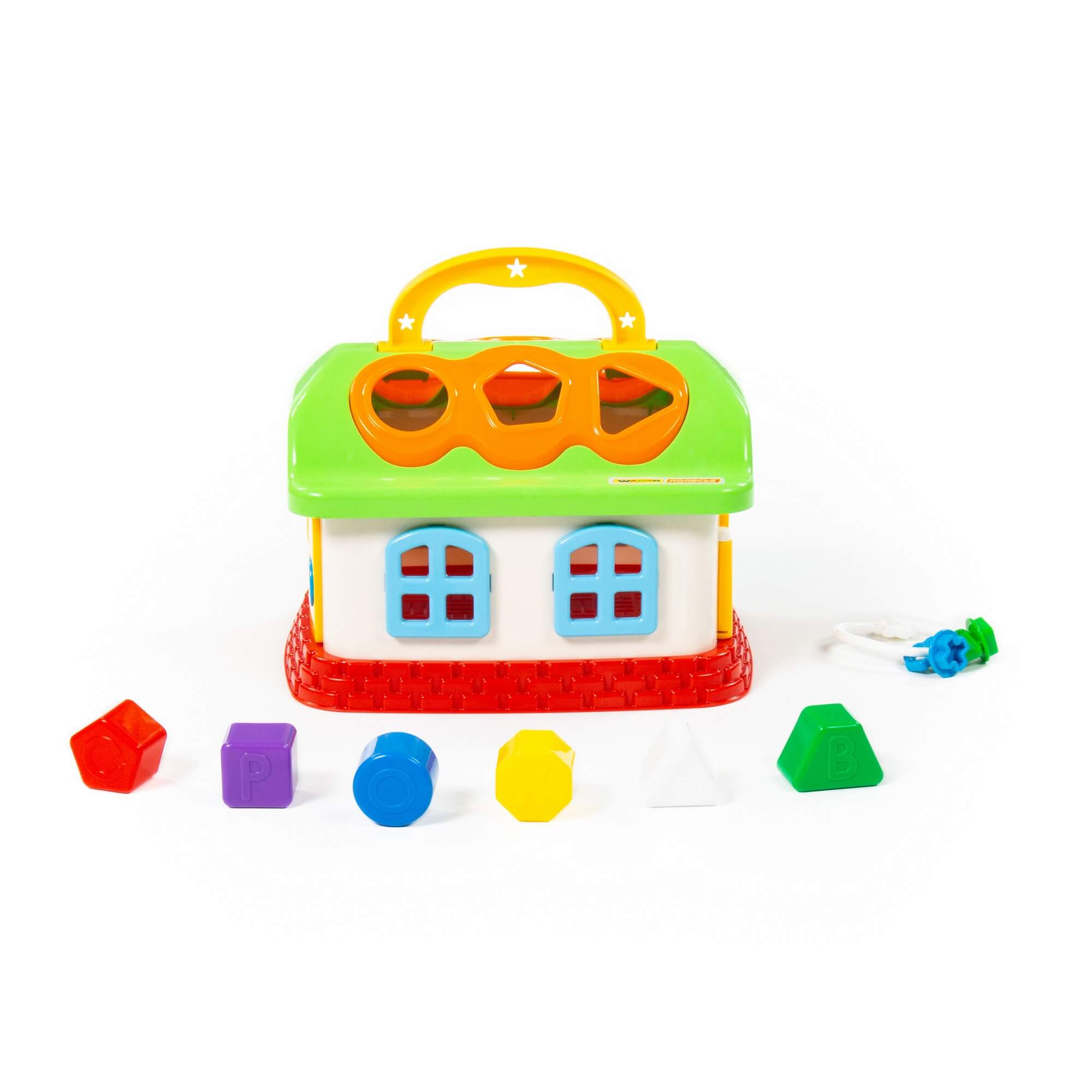 Для удобства перемещения игрушки на крыше домика установлена ручка, которая позволит малышу везде брать любимую игрушку с собой!