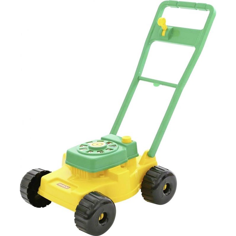 Детская игрушечная газонокосилка №3 от фабрики «Полесье» разнообразит игру детей на свежем воздухе.