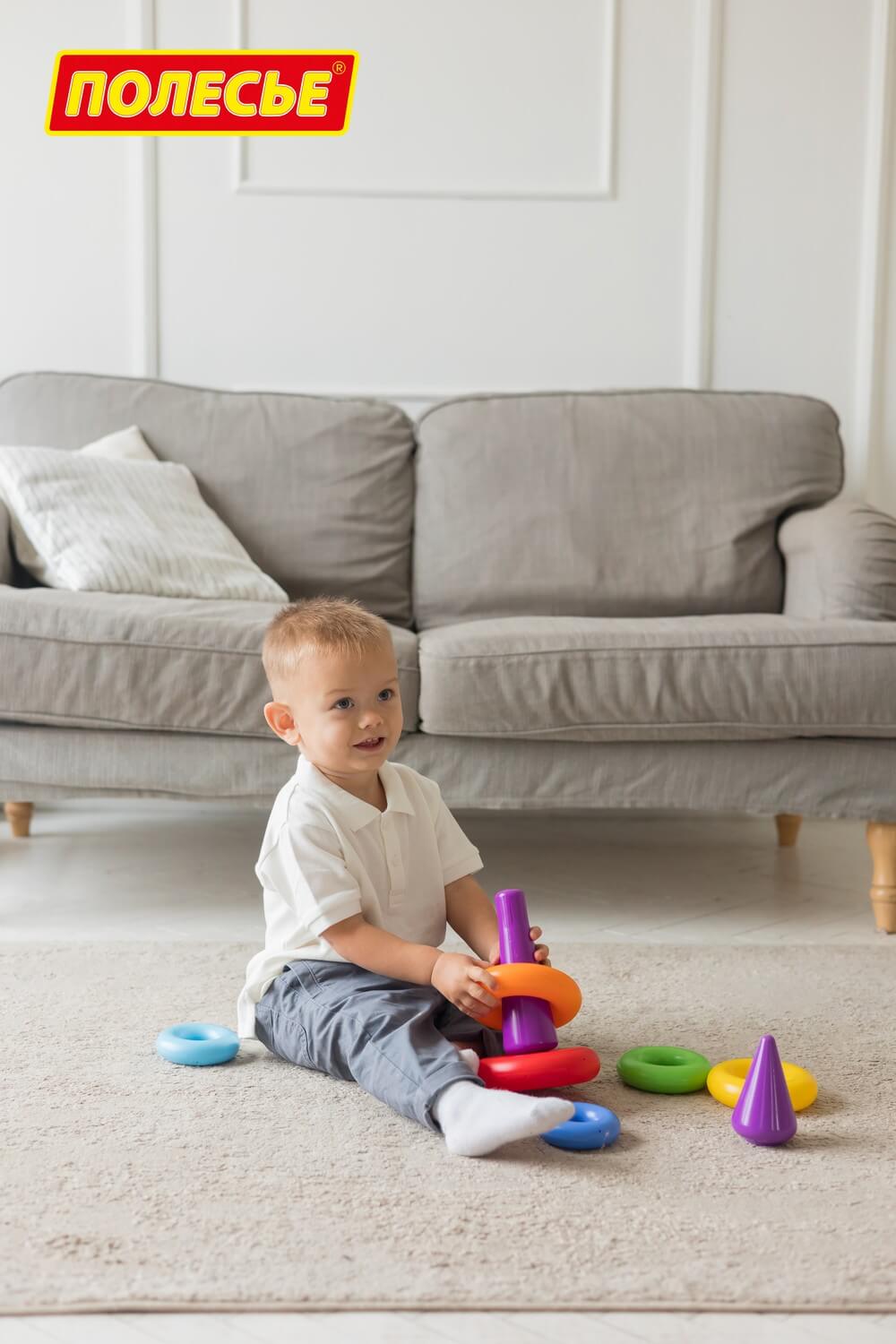 Игрушка безопасна и выполнена из качественного пластика. Благодаря классической пирамидке у малыша развиваются логика, память, мелкая моторика рук.