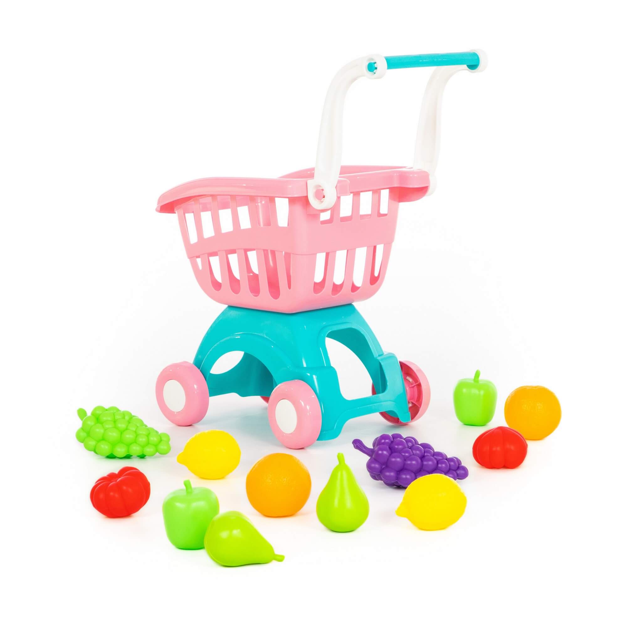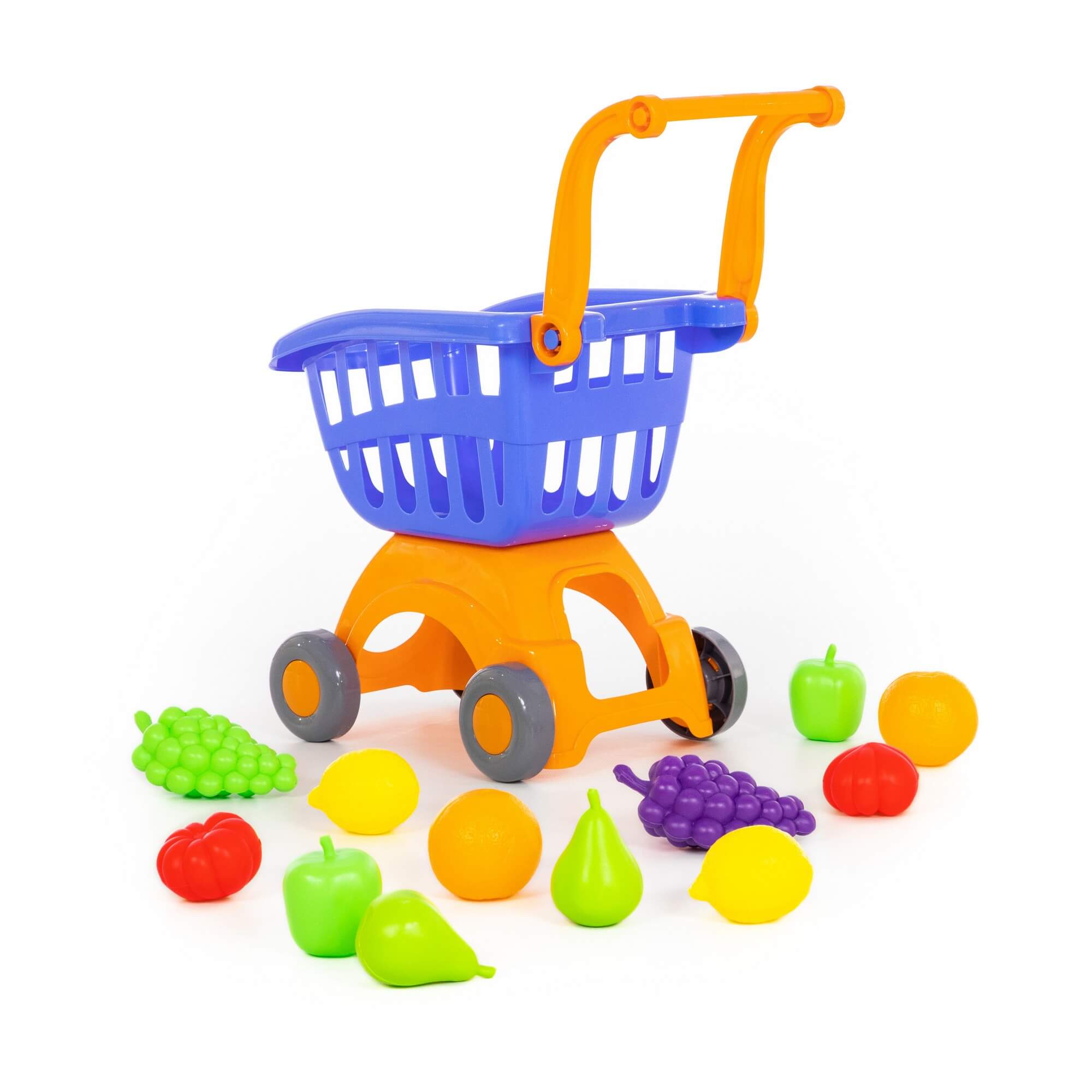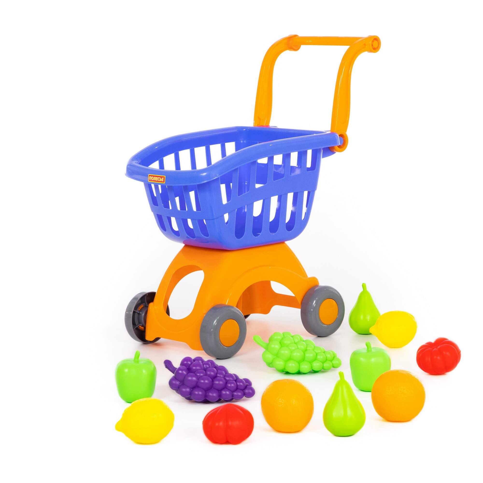 Тележка для маркета "Мини" + набор продуктов №15 (12 элементов) (в сеточке) арт.71392 Полесье