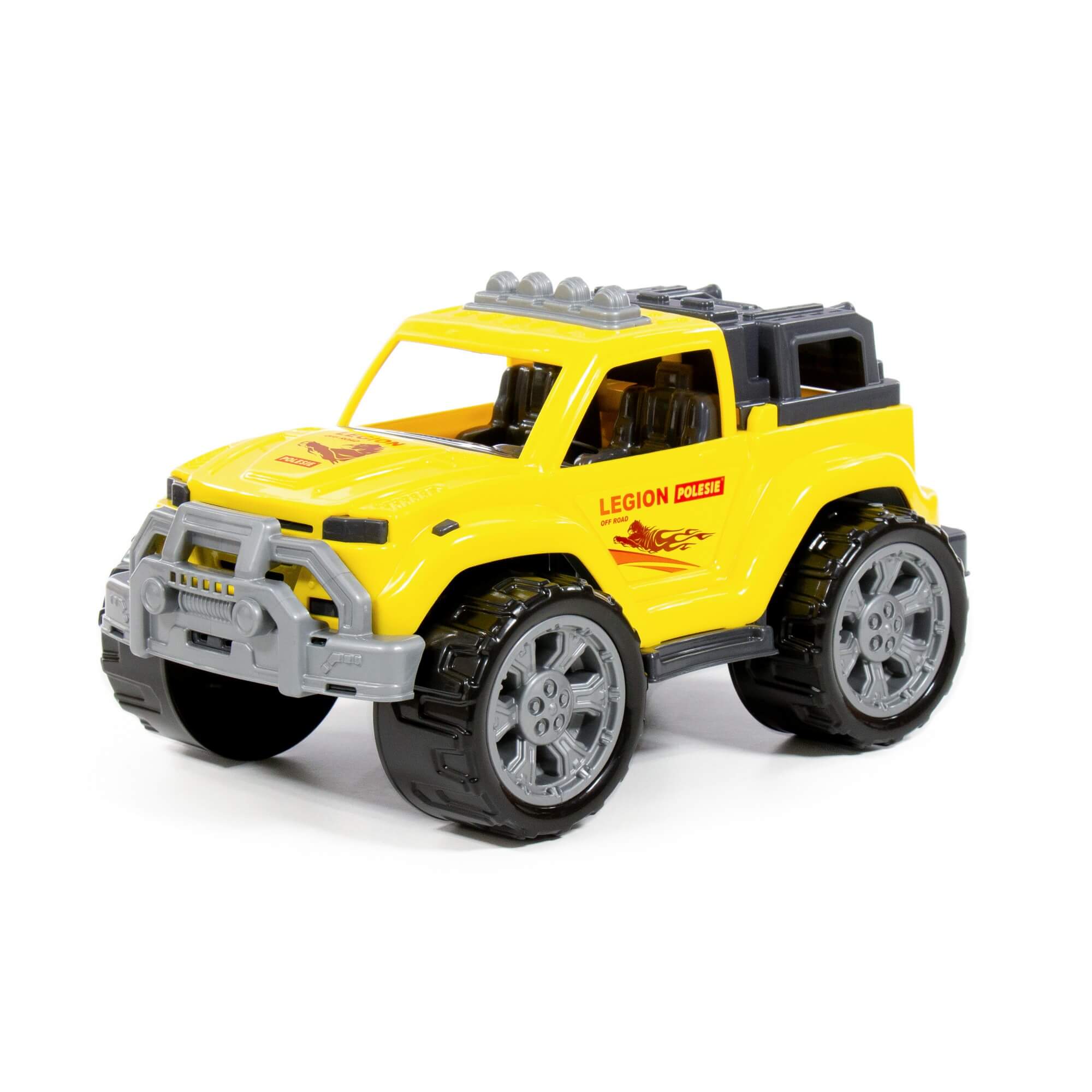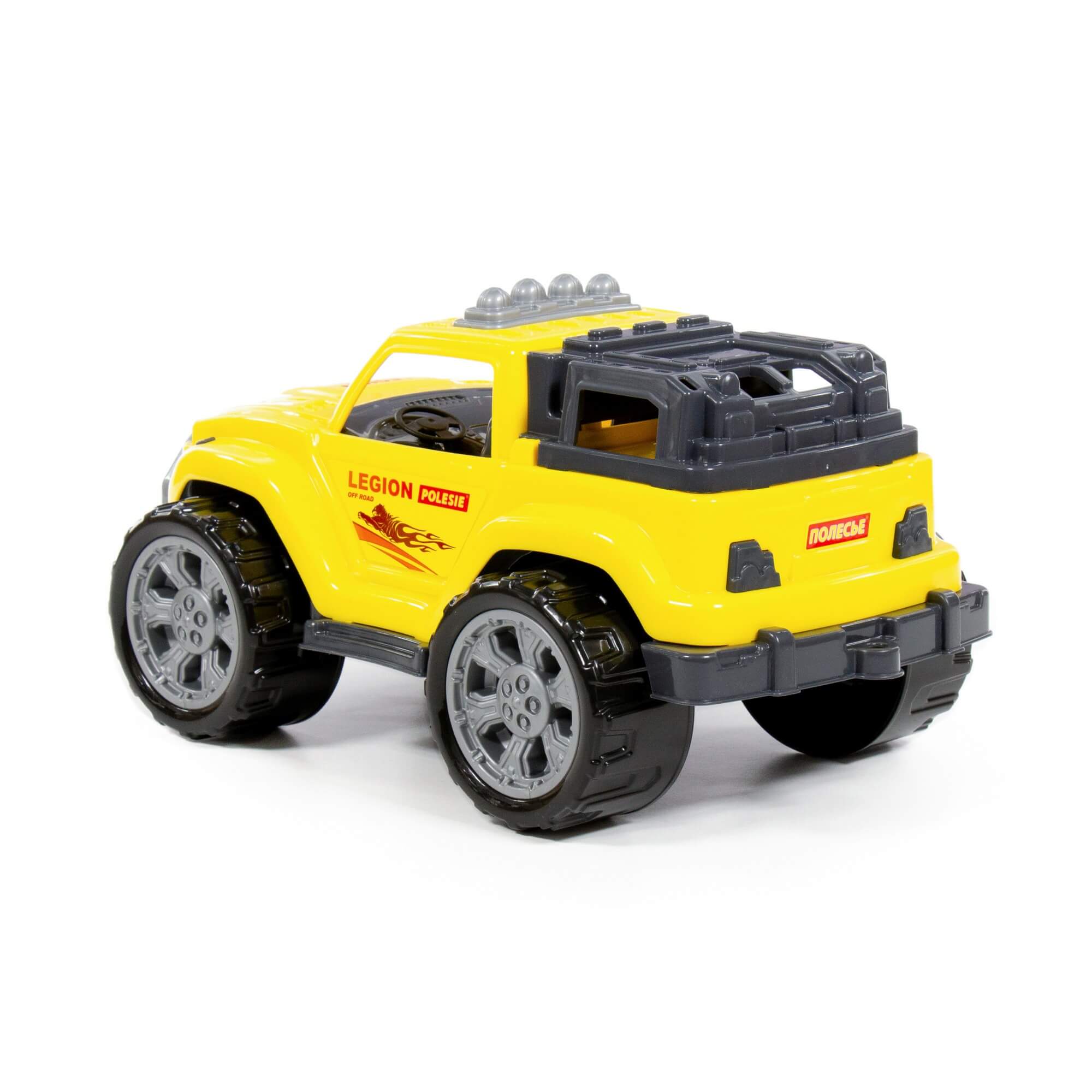 Серия детских игрушечных автомобилей «Легион» от фабрики «Полесье» представлена в виде стильных джипов, адаптированных для моделирования различных сценариев игры. Игрушка машинка для мальчиков имеет реалистичный дизайн, округлую форму деталей.
