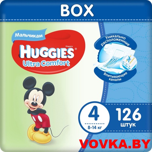 ОписаниеПодгузники Huggies Ultra Comfort для мальчиков 4 (8-14кг), 126 шт.
