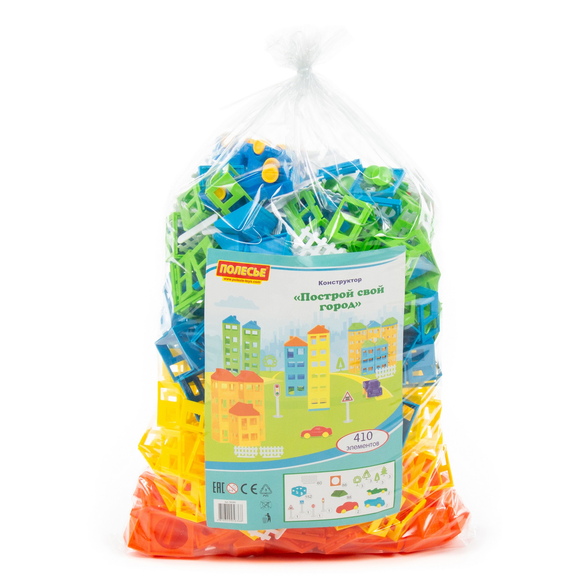 Конструктор "Построй свой город" (410 элементов) (в пакете), артикул 56368, производитель СООО «ПП Полесье», РБ.