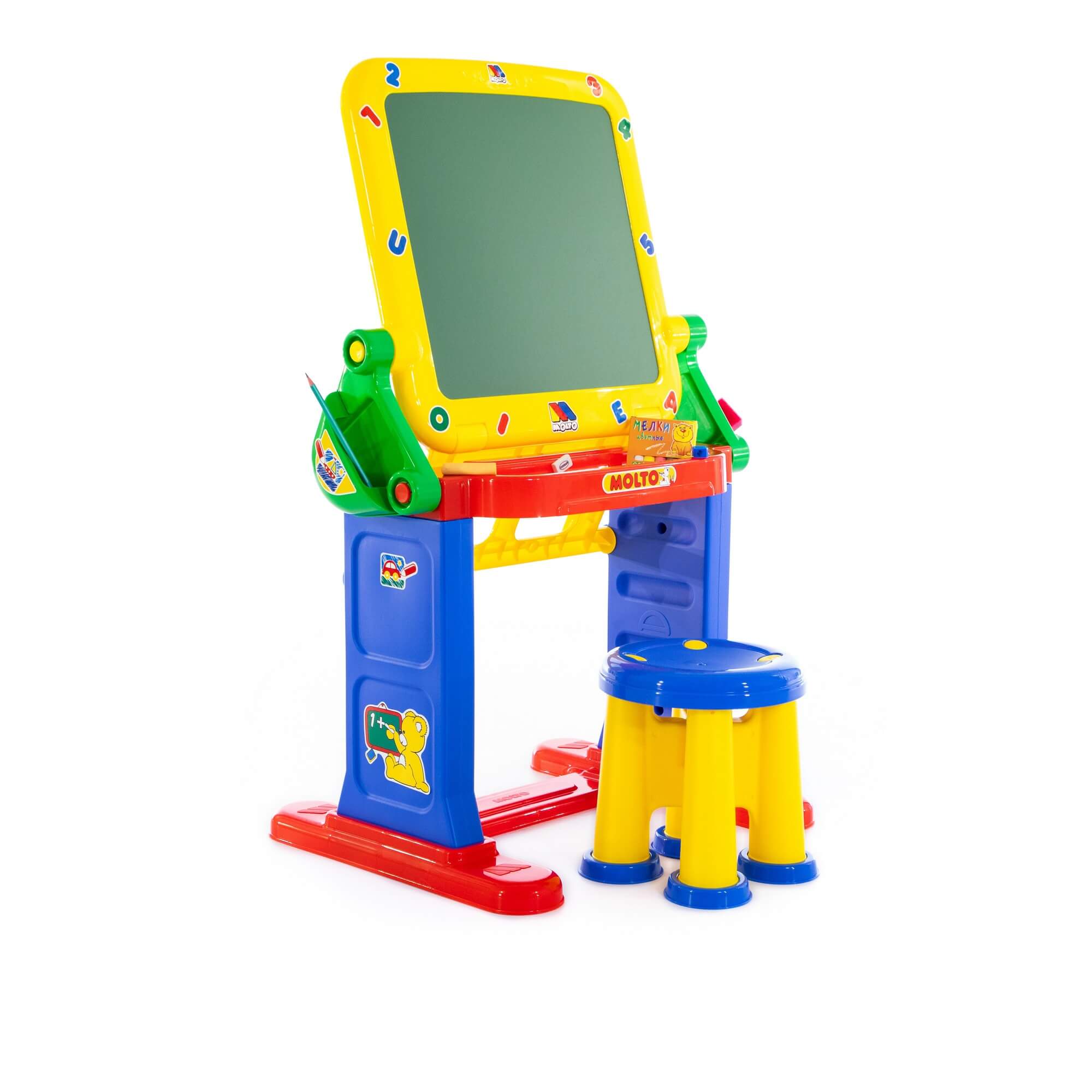 Детская парта - трансформер состоит из стола для дошкольника, который легким движением руки превращается в грифельную доску, в комплект также входит табуретка.