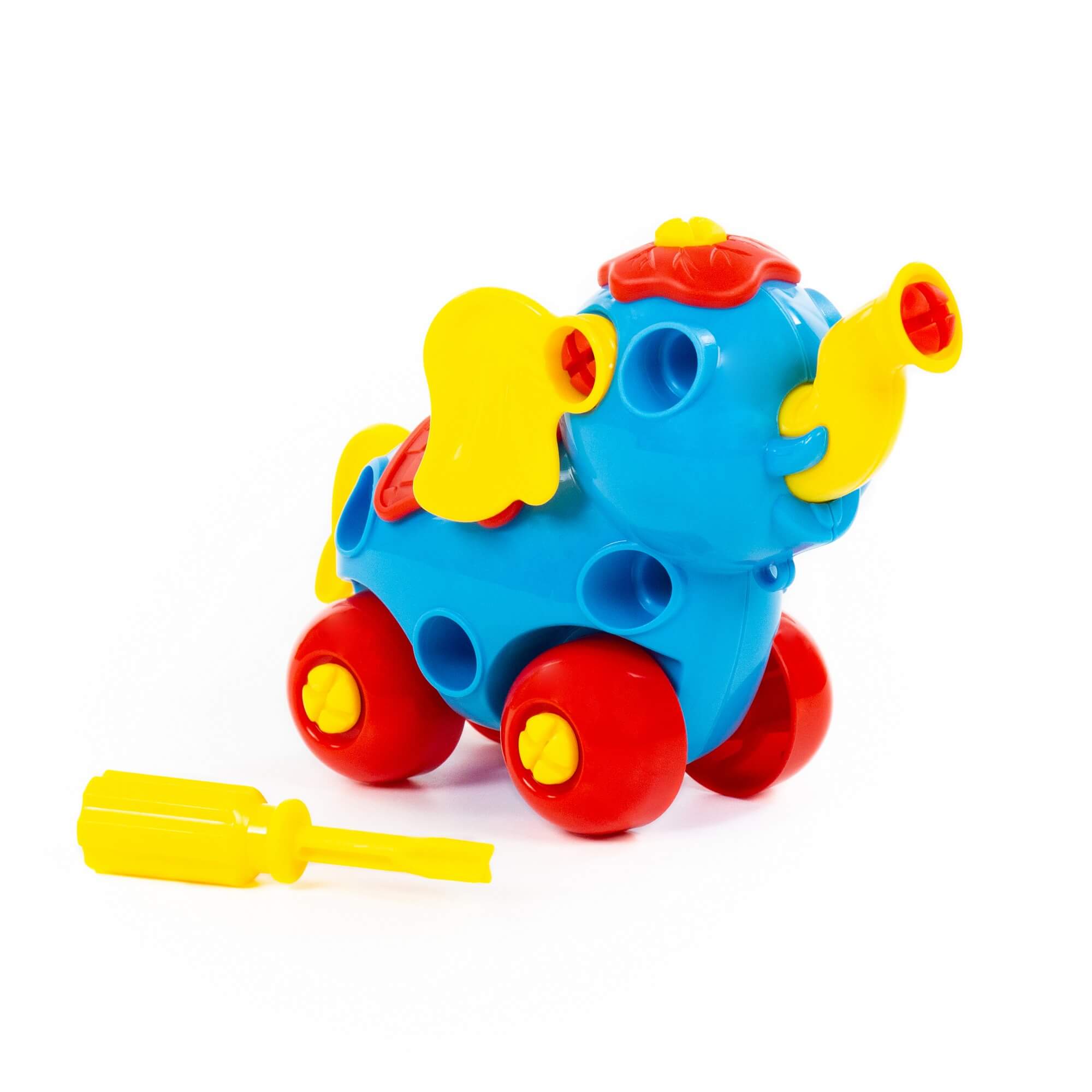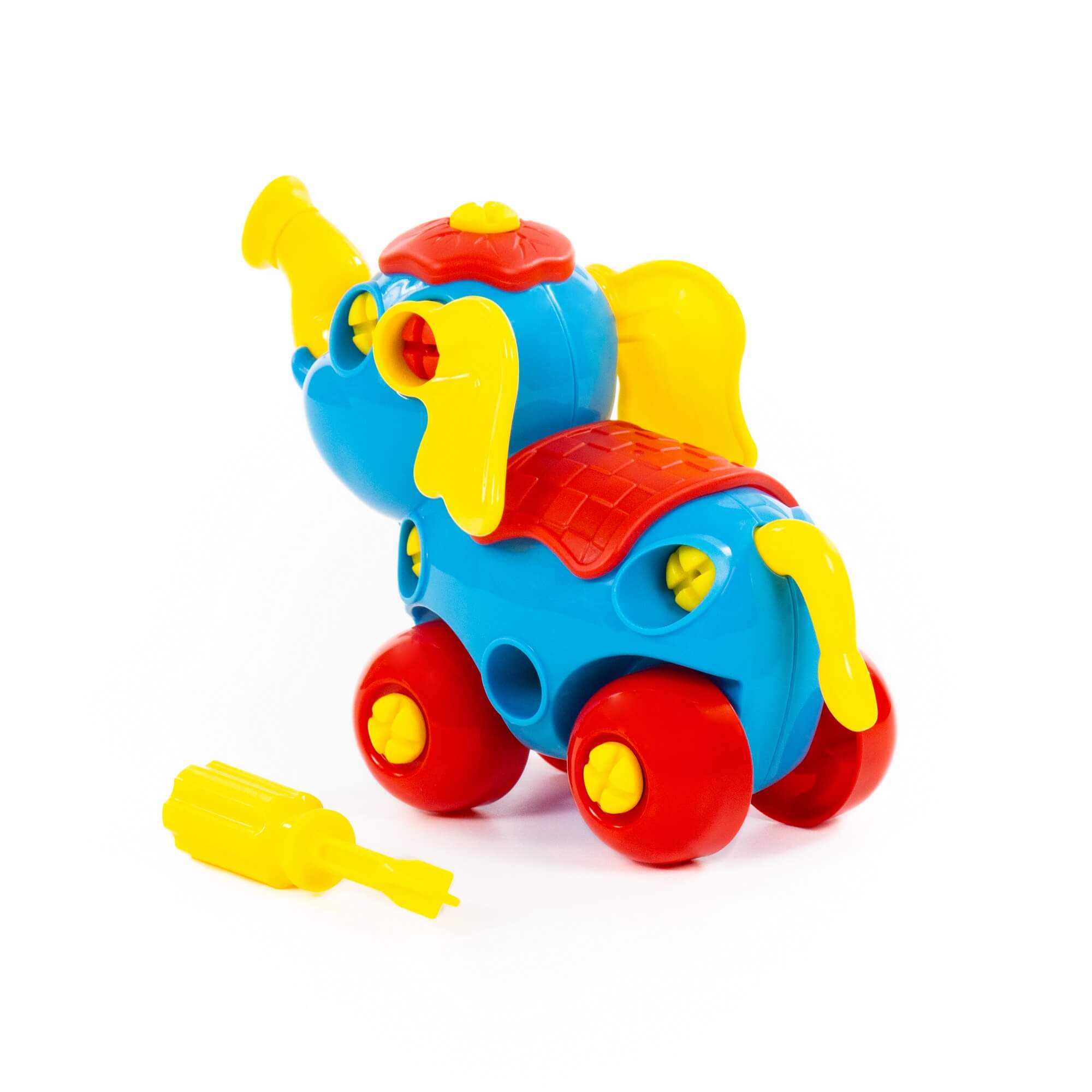 С помощью конструктора "Слоник" от фабрики Полесье ребёнок не просто знакомится с миром животных, но и может многократно собирать и разбирать игрушку по деталям. Для этого в наборе предусмотрена специальная игрушечная отвёртка. Игрушка на колёсах, поэтому ей можно играть как машинкой.