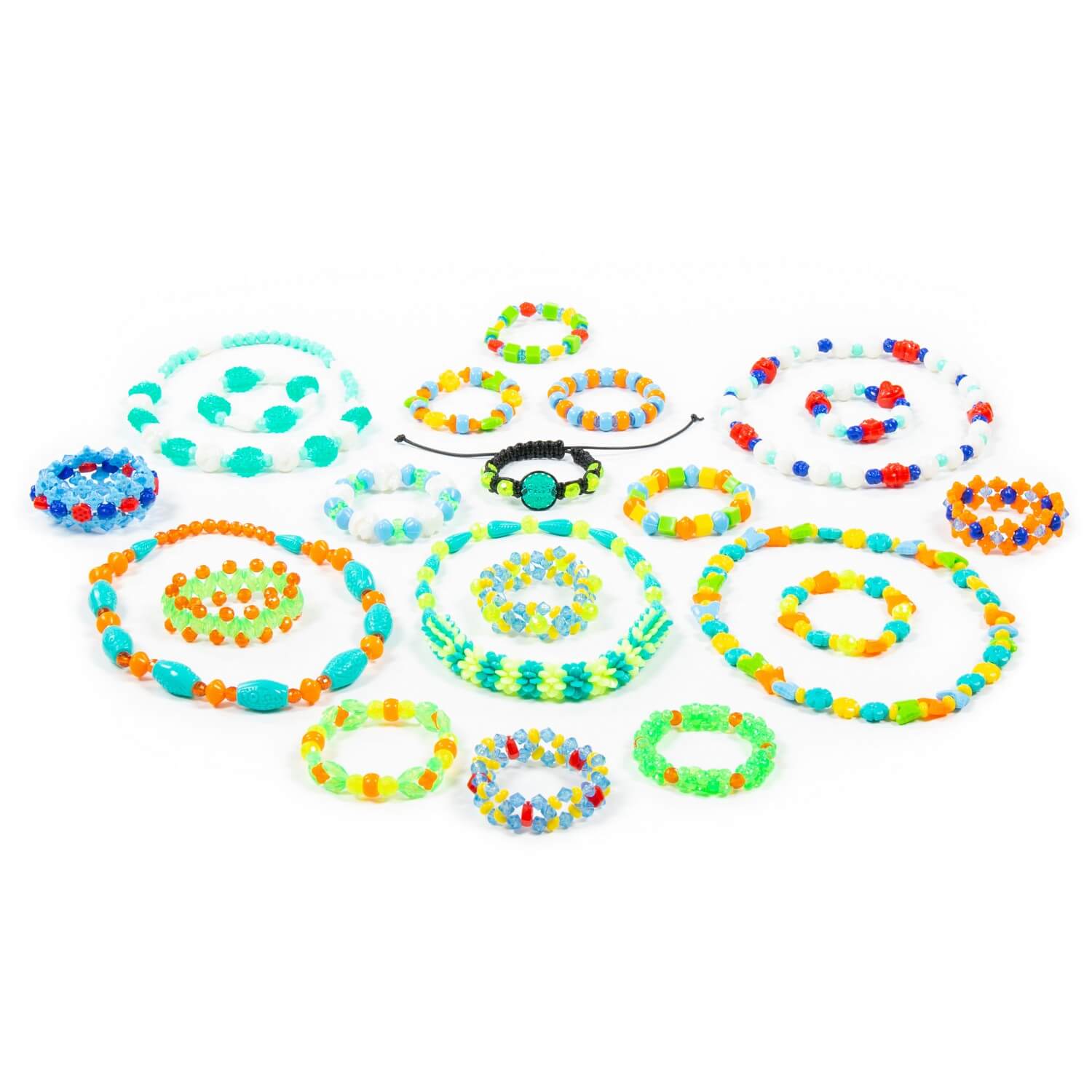 В комплект входит более 1000 бусинок, шнурок и резиночка для украшений. Все бусины имеют разную форму и цвет, выполнены из качественного пластика. Разнообразит игру и сделает её ещё интереснее анкета модницы, которая также входит в комплект. Такой набор для плетения позволяет фантазировать, творить, создавать своими руками разнообразные браслеты, фенечки и играть.