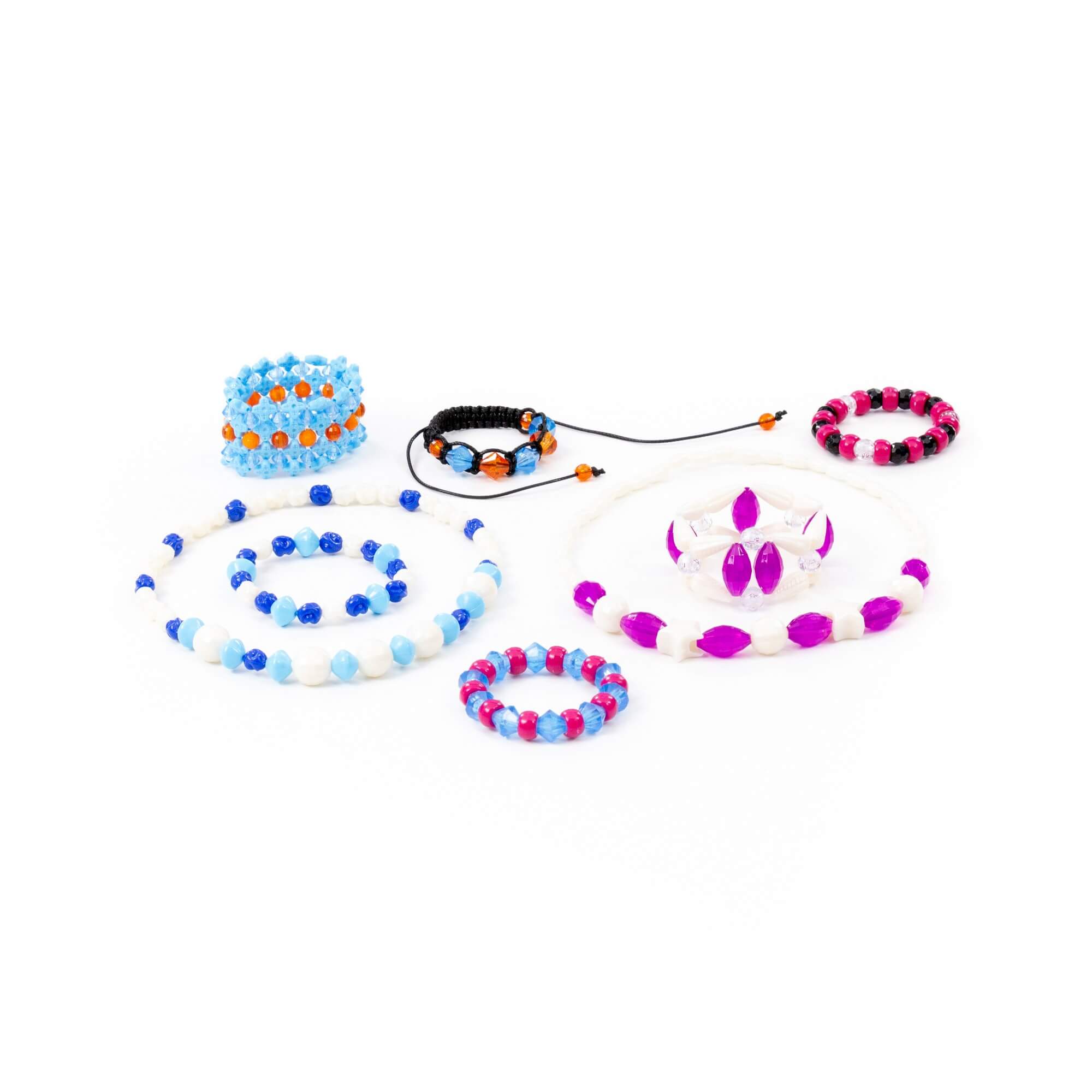 В комплект входит более 1000 бусинок, шнурок и резиночка для украшений. Все бусины имеют разную форму и цвет, выполнены из качественного пластика. Разнообразит игру и сделает её ещё интереснее анкета модницы, которая также входит в комплект. Такой набор для плетения позволяет фантазировать, творить, создавать своими руками разнообразные браслеты, фенечки и играть.