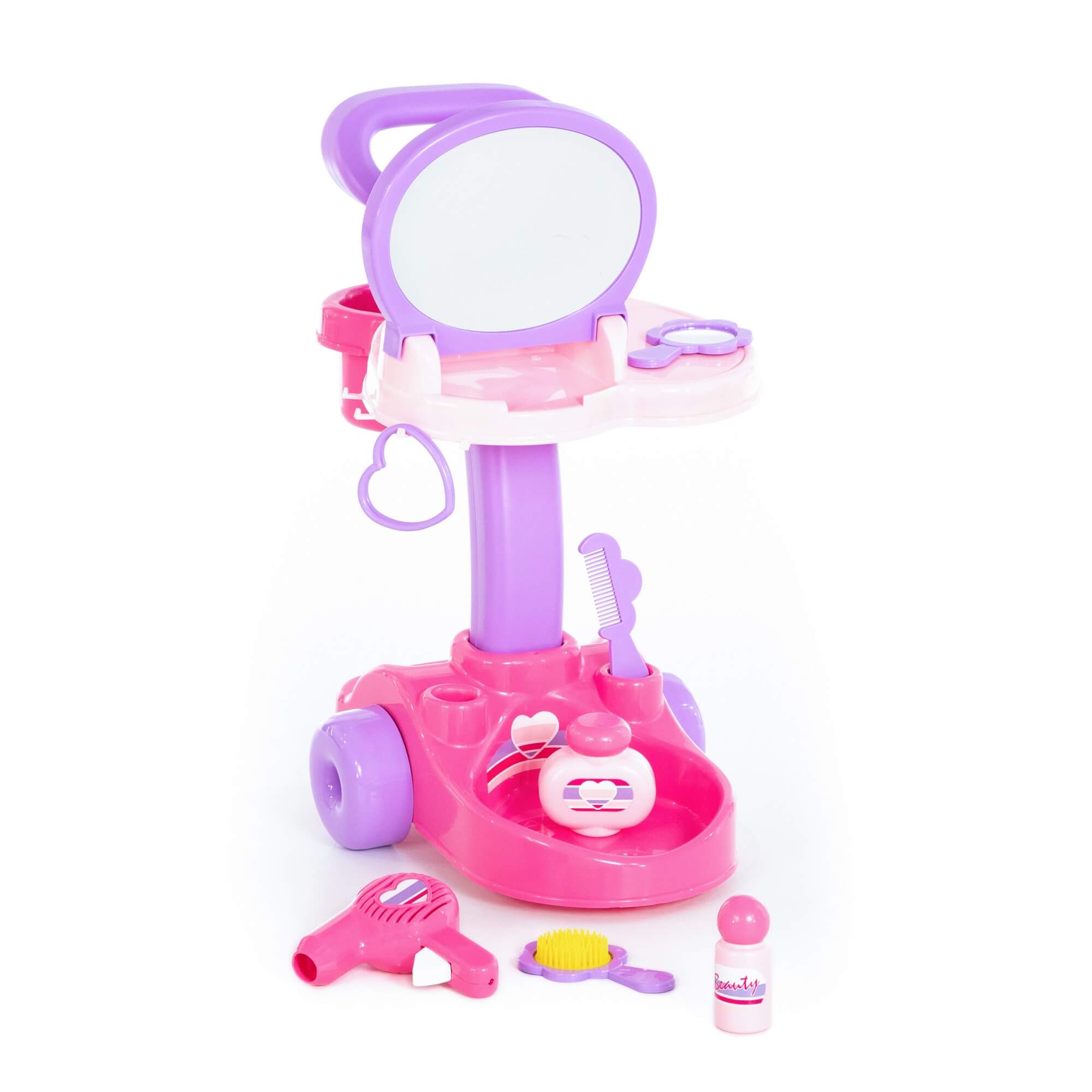 Компактный и мобильный детский салон красоты "Диана" от фабрики Полесье на тележке позволяет организовать девочке свой детский салон красоты. Набор для девочек имеет в комплекте аксессуары для детей: