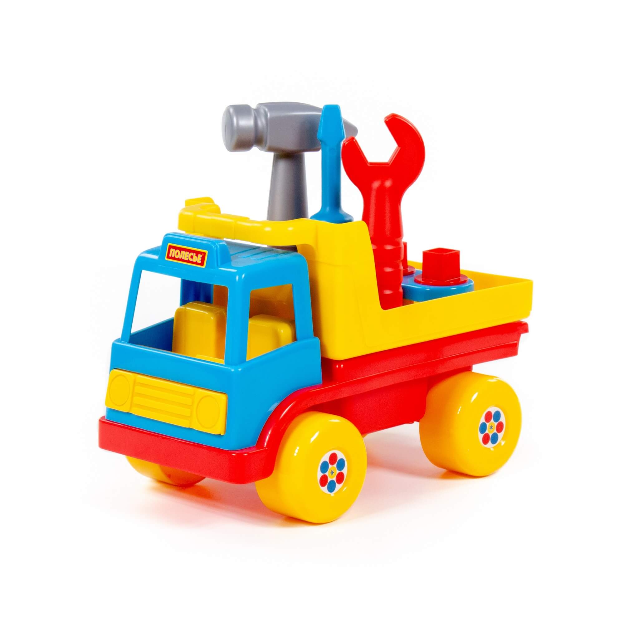 Игрушка автомобиль для малышей знакомит с работой и назначением основных слесарных инструментов, развивает моторику рук, логику, память, воображение.