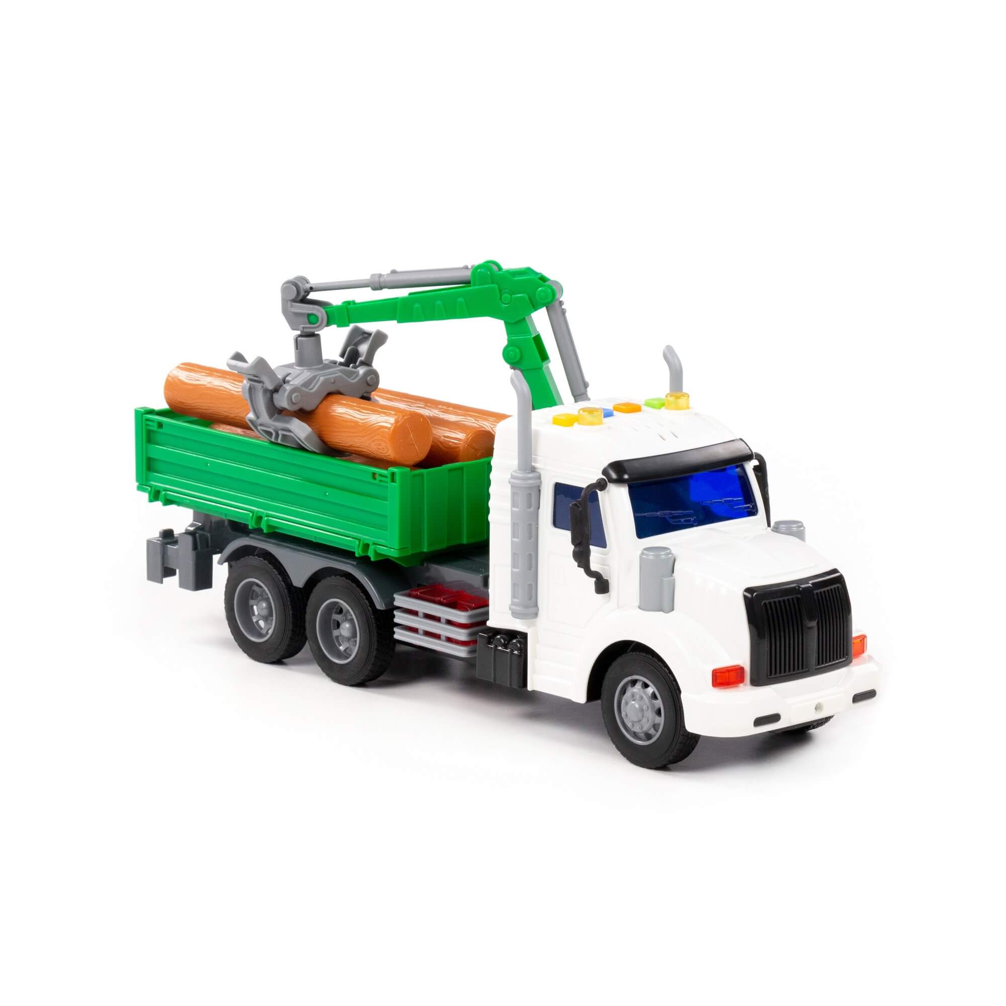 Игрушка машинка Профи для мальчиков - замечательный подарочный вариант лесовоза. Ребёнку будет интересно разгружать и загружать брёвна манипулятором.