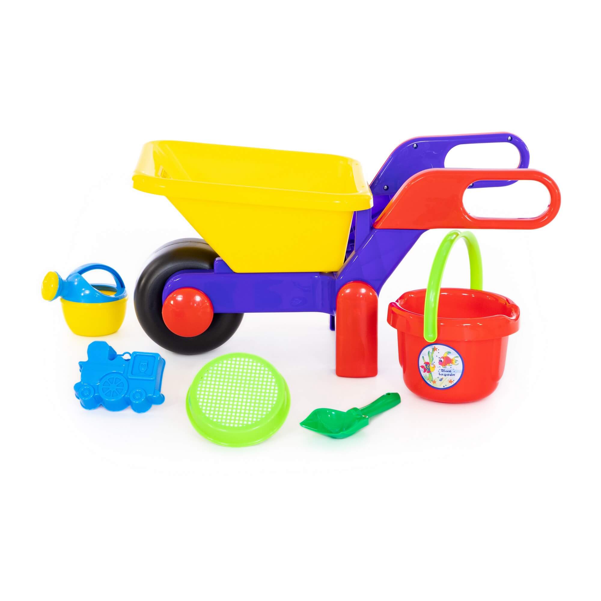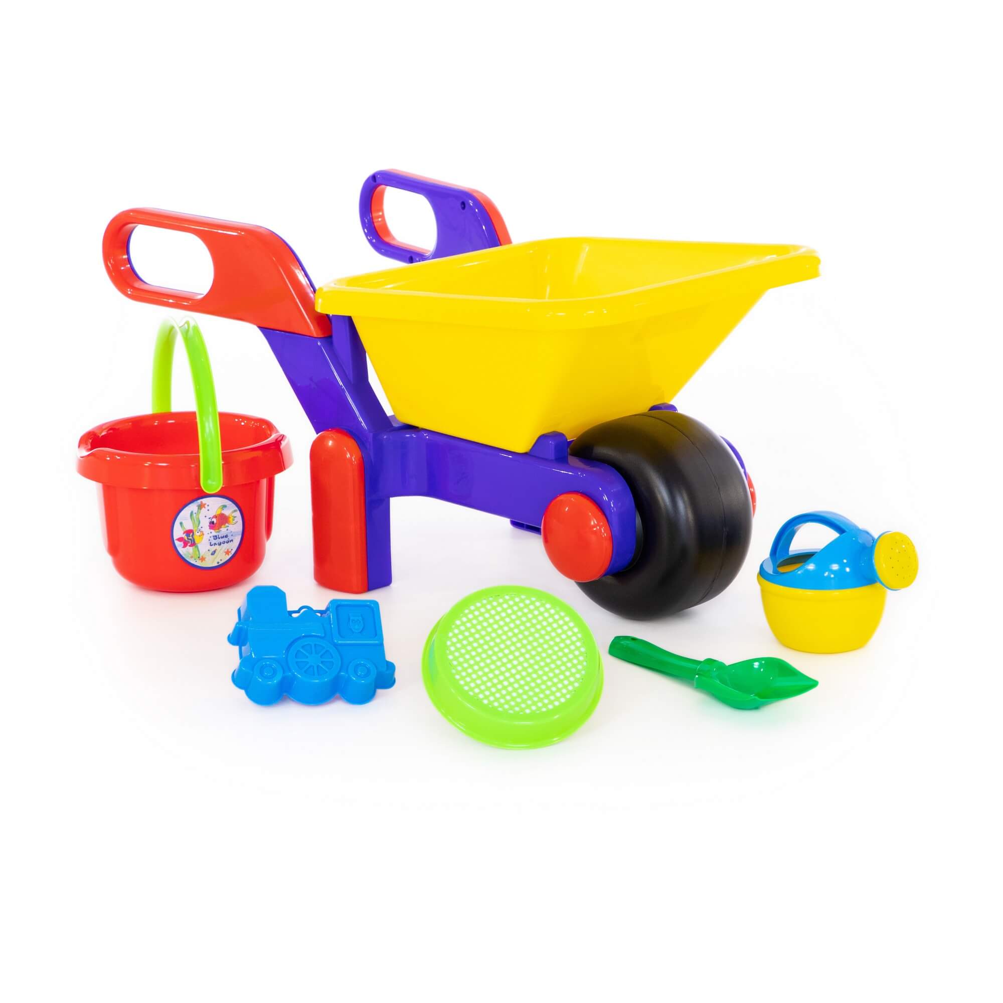 Также такая тачка - отличная осенняя и зимняя игрушка, позволяющая ребенку собирать листья и снег.В состав набора для детей от фабрики Полесье входят: